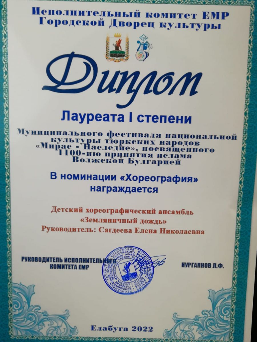 14 мая в Городском дворце культуры города Елабуги прошел Гала-концерт Муниципального фестиваля национальной культуры тюркских народов "Мирас- наследие", посвященного 1100-летию принятия ислама Волжской Булгарией. В фестивале принимали участие творческие коллективы Центра эстетического воспитания детей.