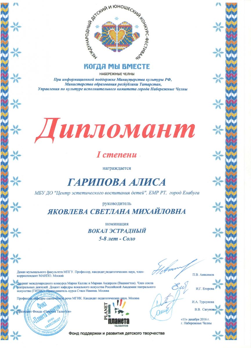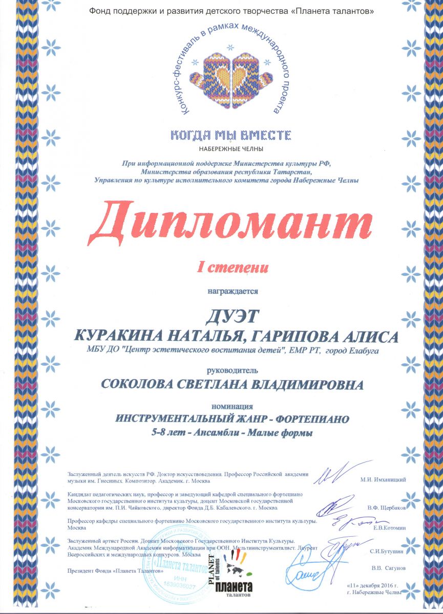 2. «Когда мы вместе». Дипломант I степени- Куракина Наталья, Гарипова Алиса - руководитель Соколова С.В.