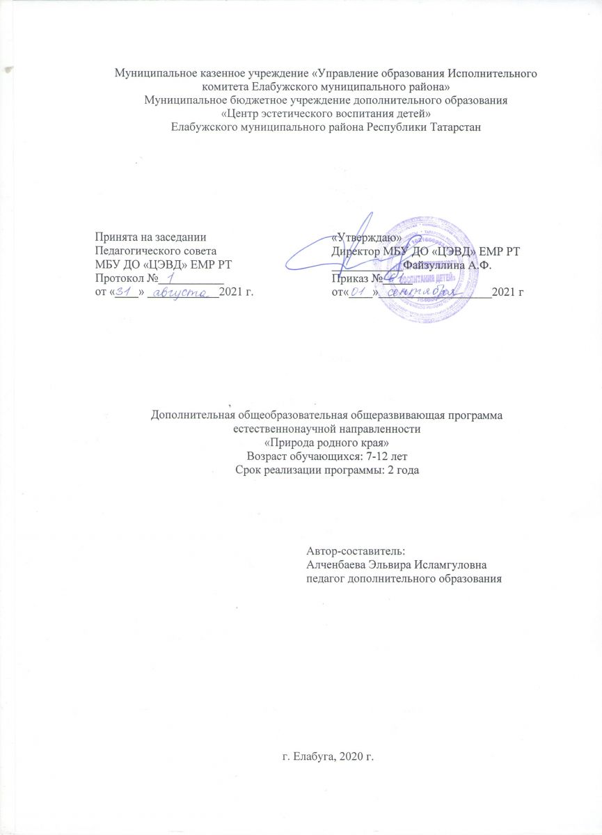 "Природа родного края" Преподаватель: Алченбаева Эльвира Исламгуловна Программа