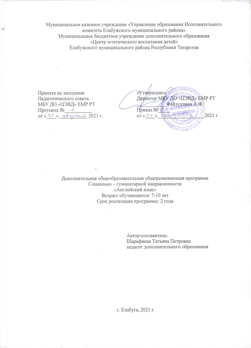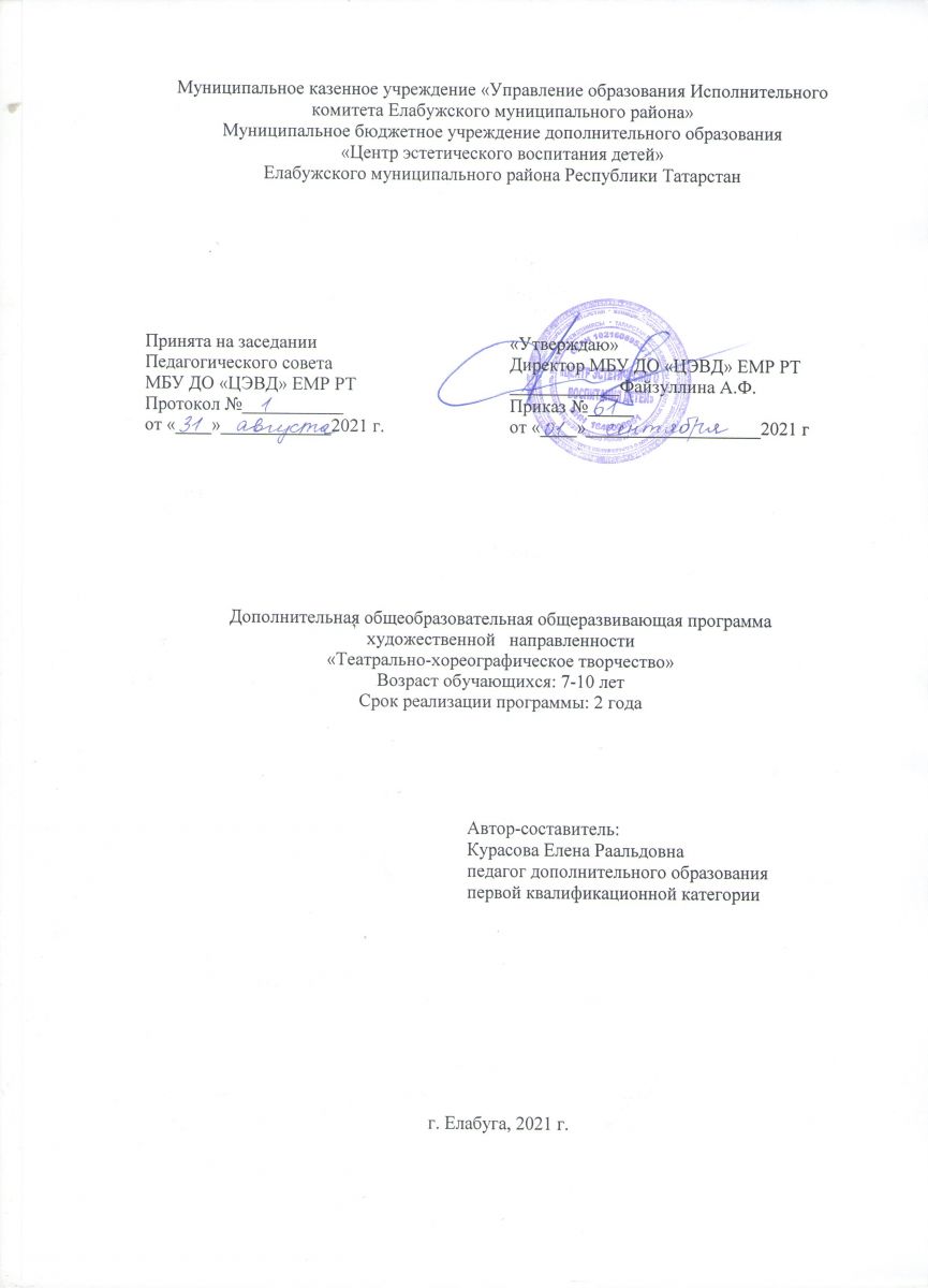 Муниципальное бюджетное учреждение дополнительного образования "Центр эстетического воспитания детей " Елабужского муниципального района РТ / Татарстан Республикасы Алабуга муниципаль районы балаларга өстәмә белем бирү бюджет учреждениесе " Балаларга эстетик тәрбия бирү үзәге"