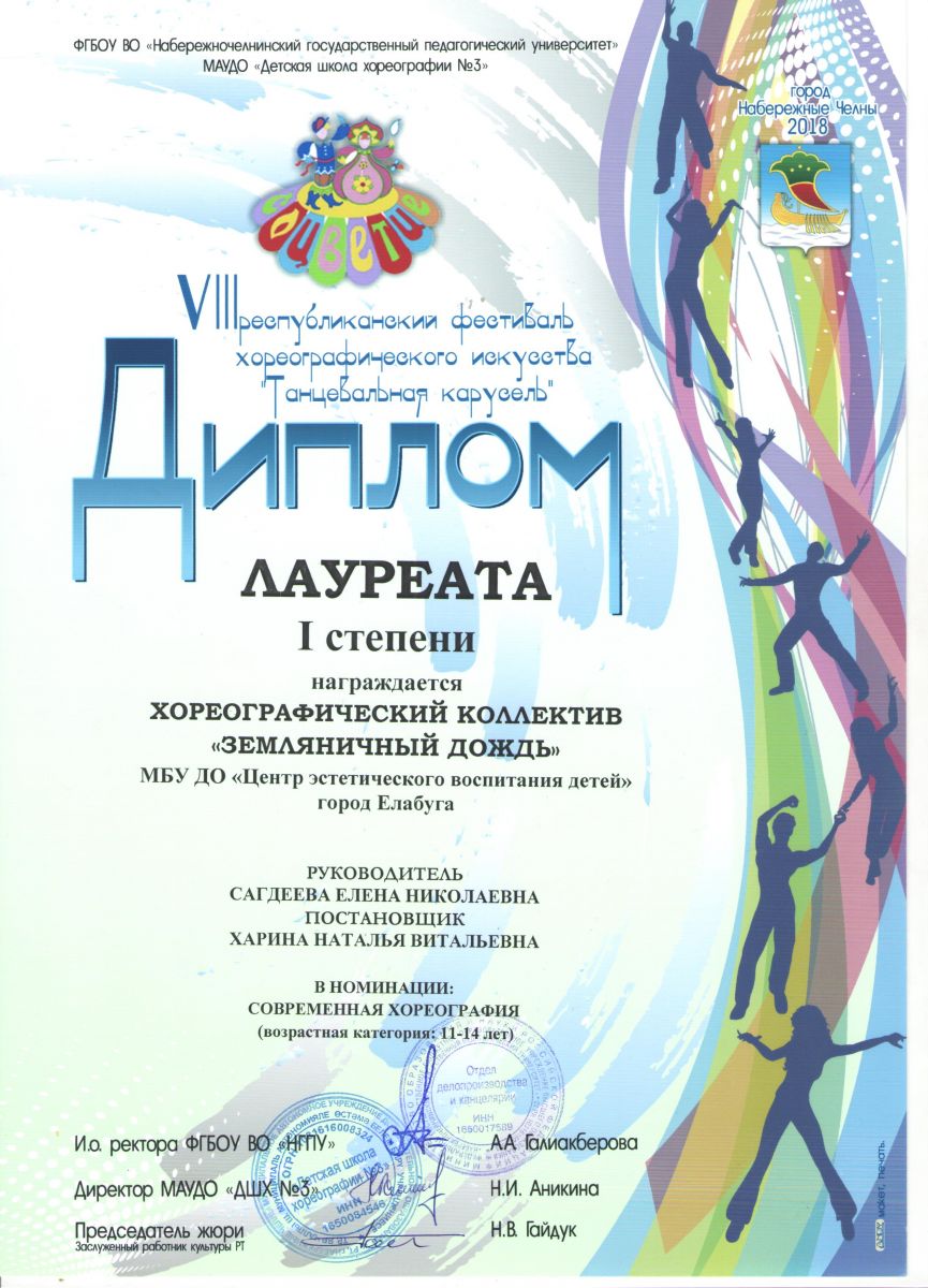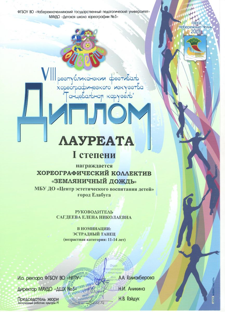 13. XVIII открытый телевизионный молодежный фестиваль эстрадного искусства "Созвездие- Йолдызлык" - Хореографический коллектив «Земляничный дождь» - Хореография - Диплом 3 место