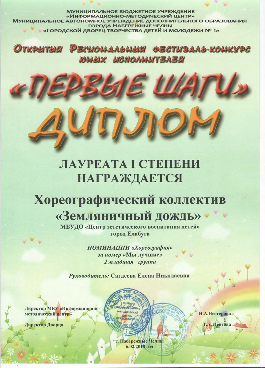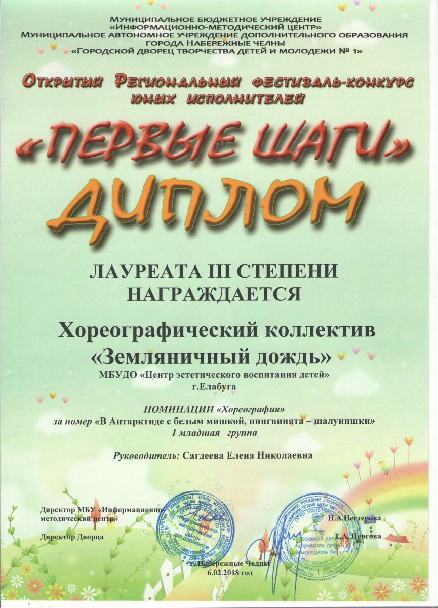 9. Фестиваль - конкурс "Первые шаги" - Хореографический коллектив «Земляничный дождь» - Хореография - Диплом Лауреата III степени