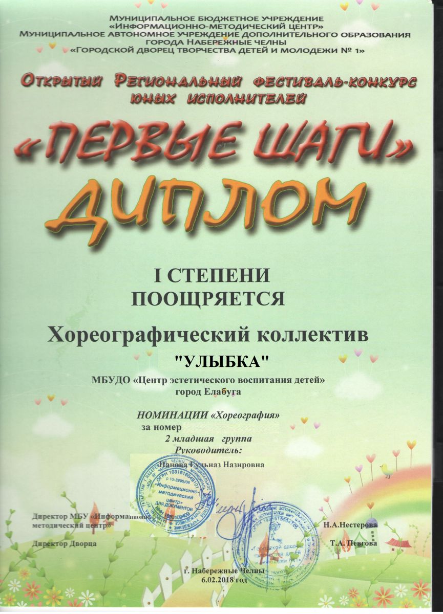 8.Фестиваль - конкурс "Первые шаги" - Хореографический коллектив «Улыбка» - Хореография - Диплом I степени