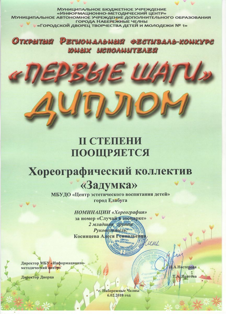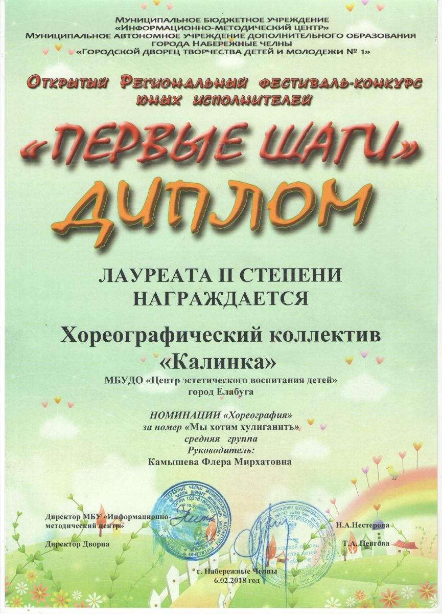 6. Фестиваль - конкурс "Первые шаги" -Хореографический коллектив «Карамель» - Хореография - Диплом II степени