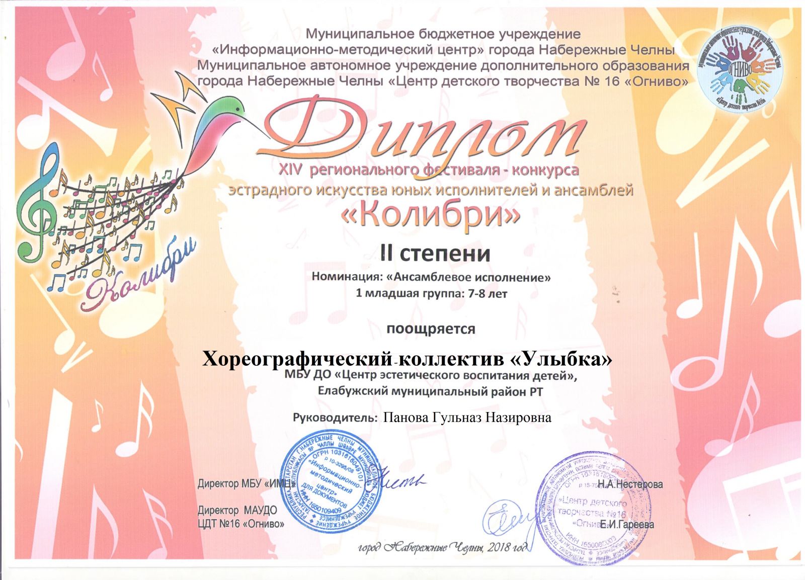 VIII -фестиваль конкурс эстрадного искусства юных исполнителей и ансамблей "Колибри-2018" |