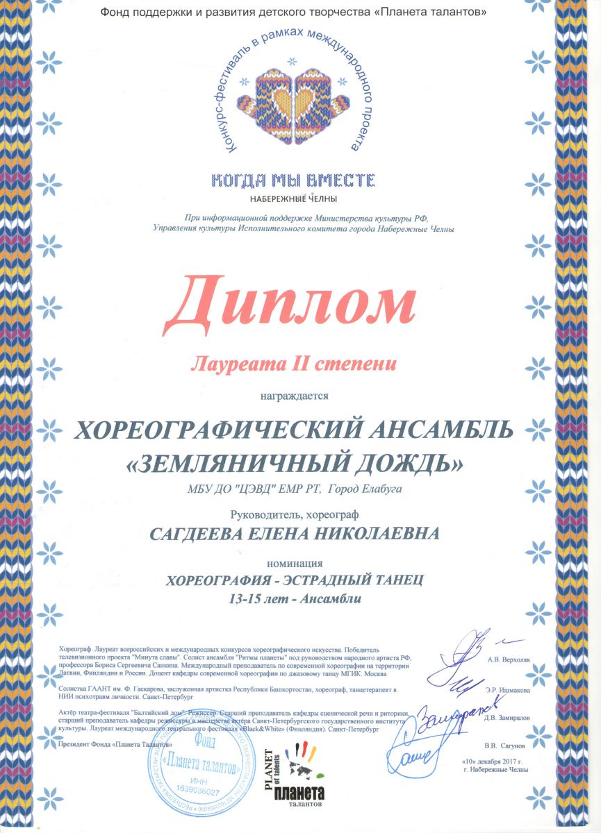 29.Конкурс-фестиваль в рамках проекта «Когда мы вместе» - Хореографический коллектив «Земляничный дождь» - Хореография - Диплом лауреата II степени