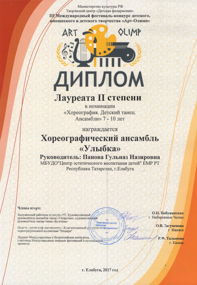 5. III фестиваль – конкурс детского, юношеского и детского творчества «Арт-Олимп» - Хореографический коллектив «Улыбка» - Хореография - Лауреат II степени
