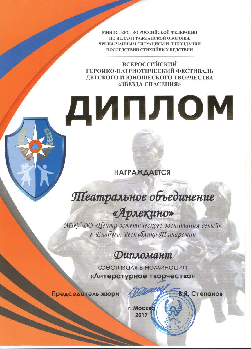2. Героико-патриотический фестиваль детского и юношеского творчества «Звезда спасения» - Театральное объединение «Арлекино» - Театральное объединение – Дипломант