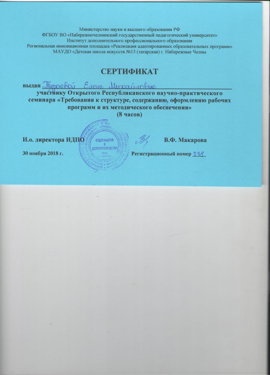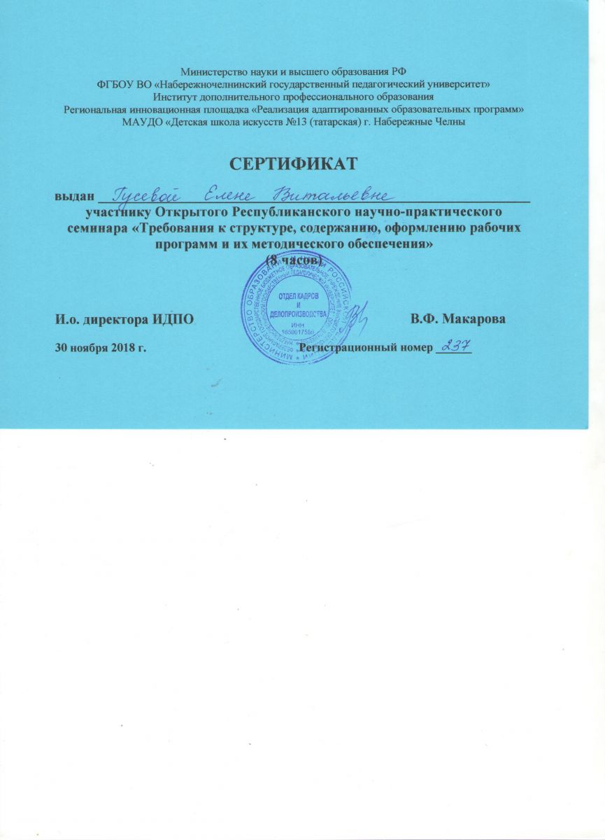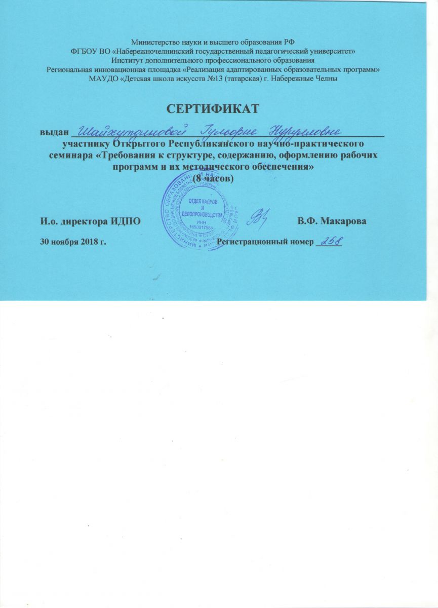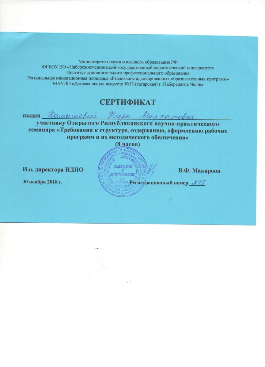 Образовательная стажировка с отрывом от работы в МБУ ДО «Детская музыкальная школа №22» Приволжского района г. Казани по теме « Формирование композиторских навыков посредством повышения мотивации к обучению учащихся в ДМШ и ДШИ» |