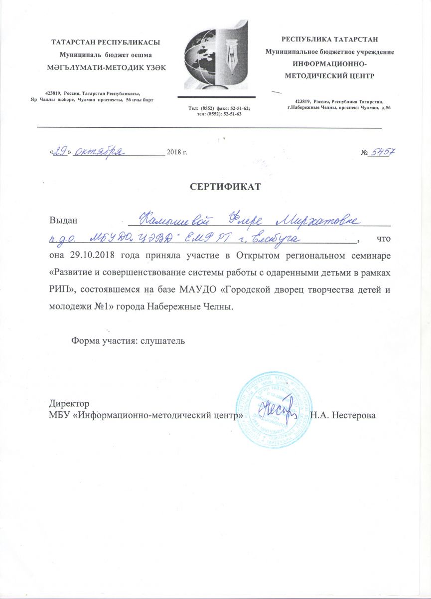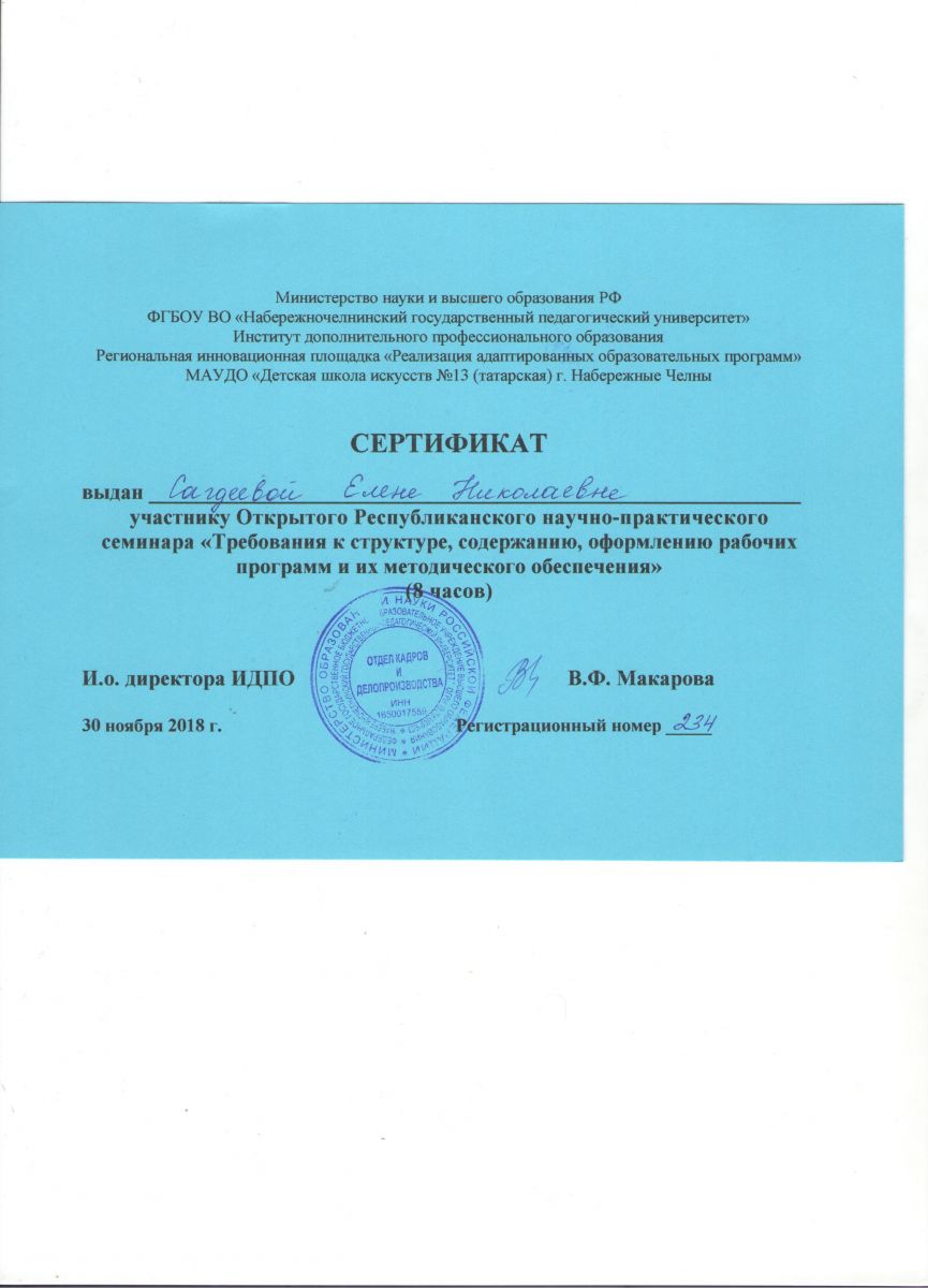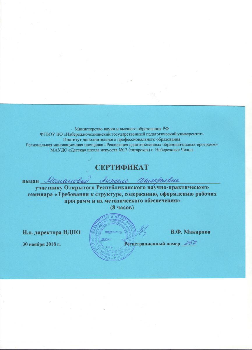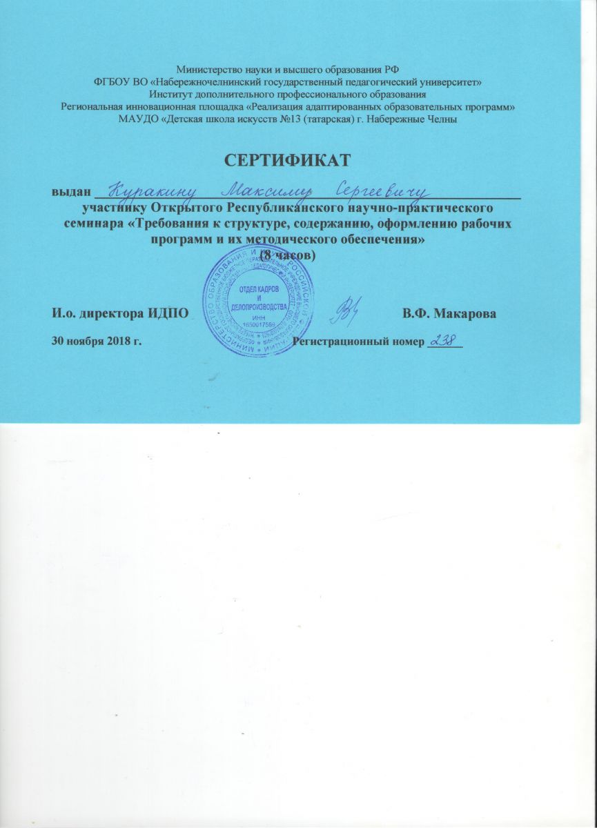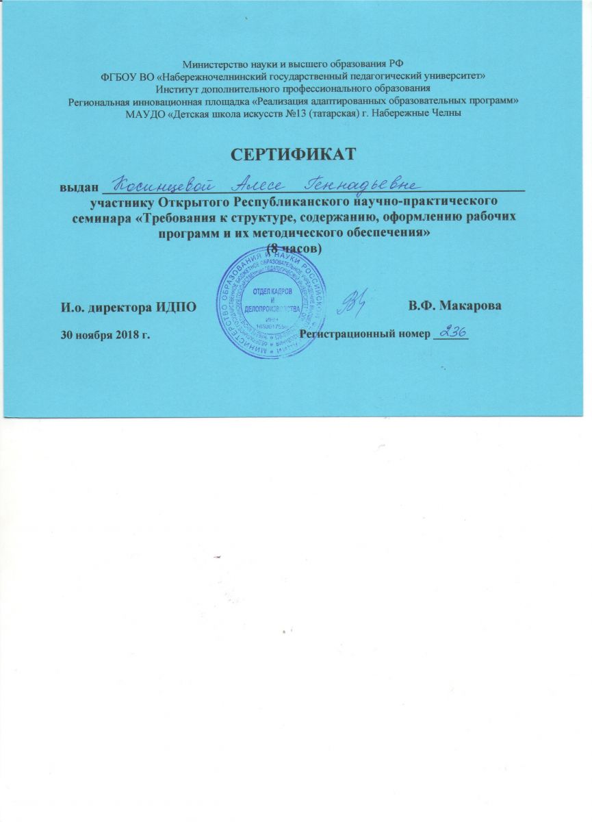 Образовательная стажировка с отрывом от работы в МБУ ДО «Детская музыкальная школа №22» Приволжского района г. Казани по теме « Формирование композиторских навыков посредством повышения мотивации к обучению учащихся в ДМШ и ДШИ» |