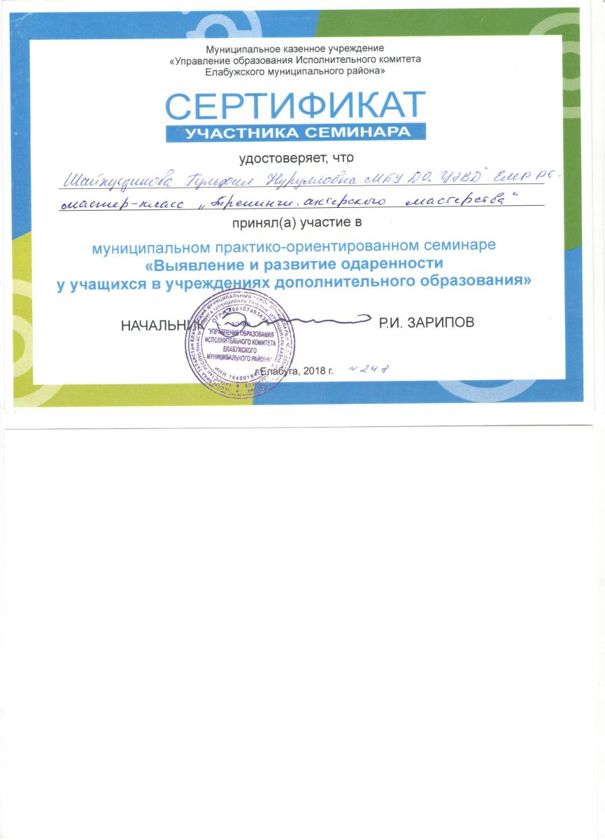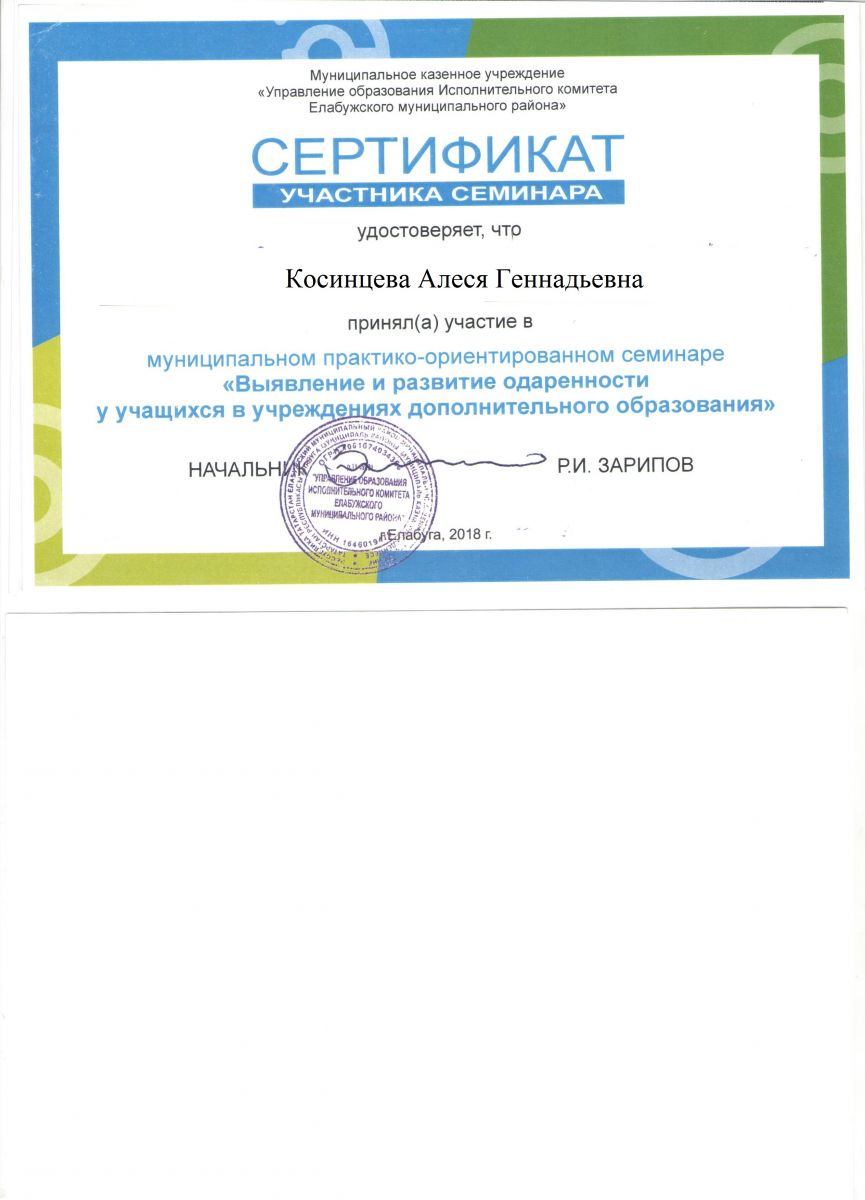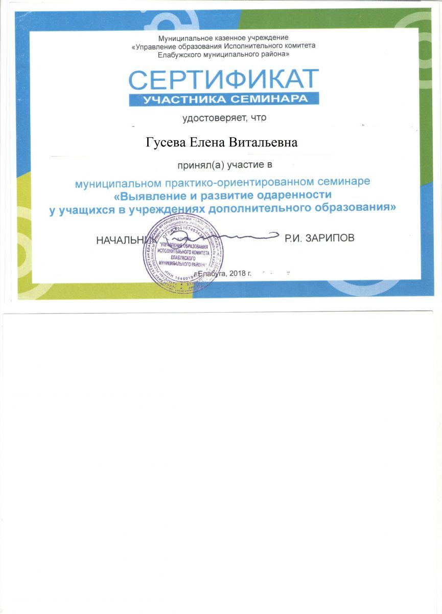 Муниципальный практико - ориентированный семинар «Выявление и развитие одаренности у учащихся в учреждениях дополнительного образования» |