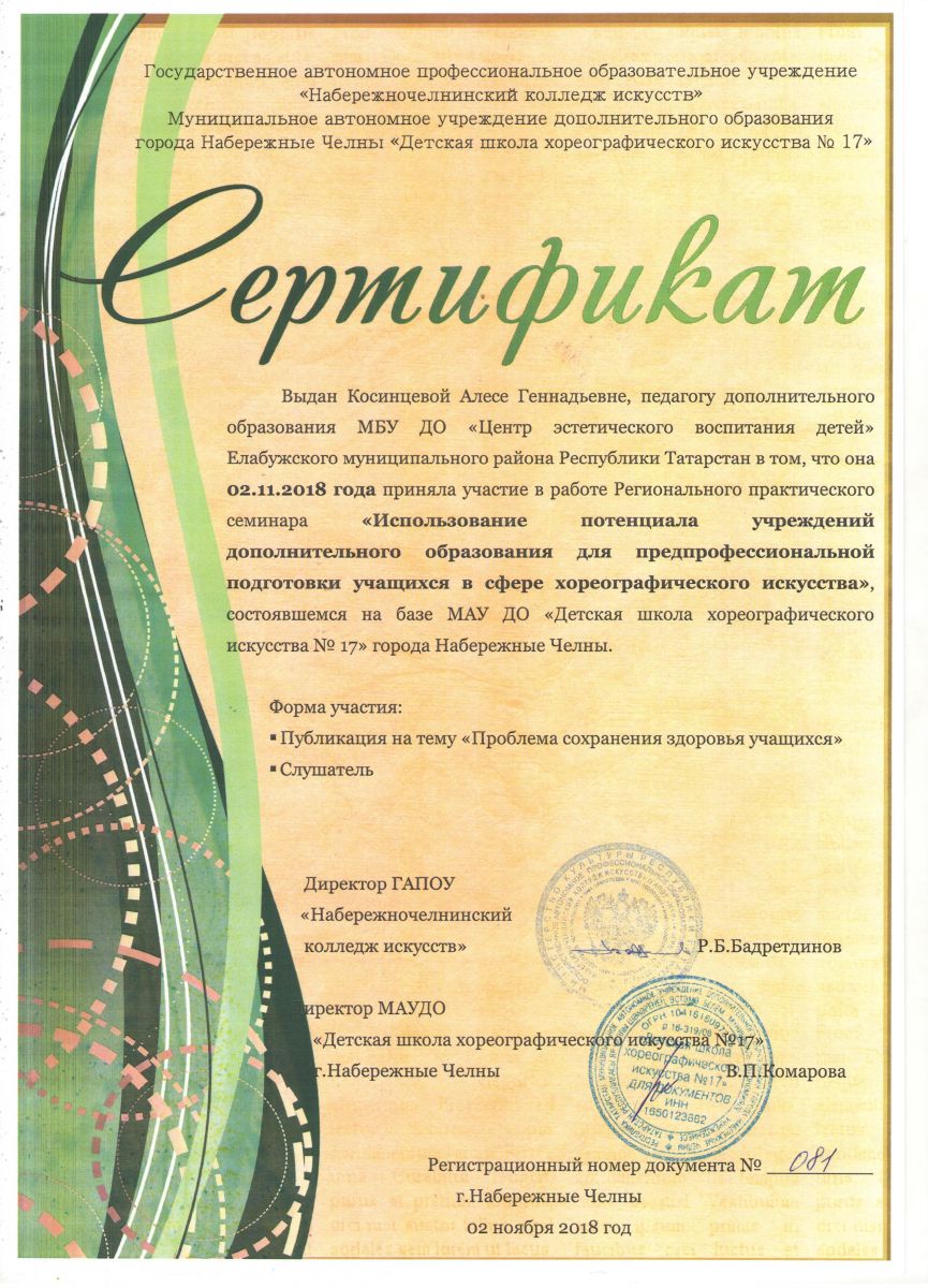 Практический семинар «Использование потенциала учреждений дополнительного образования для предпрофессиональной подготовки учащихся в сфере хореографического искусства» |