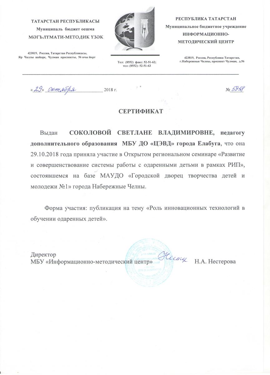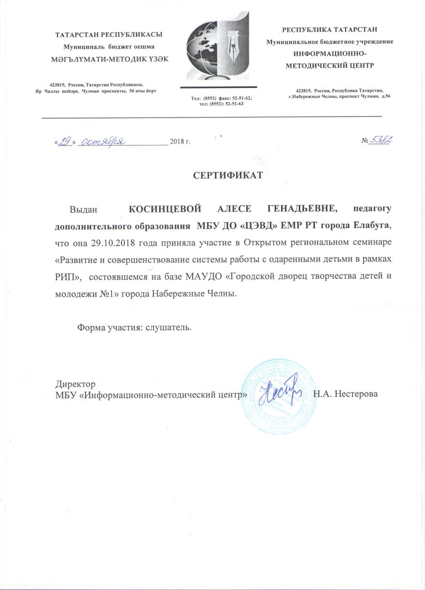 Открытый семинар «Развитие и совершенствование системы работы с одаренными детьми в рамках РИП» |