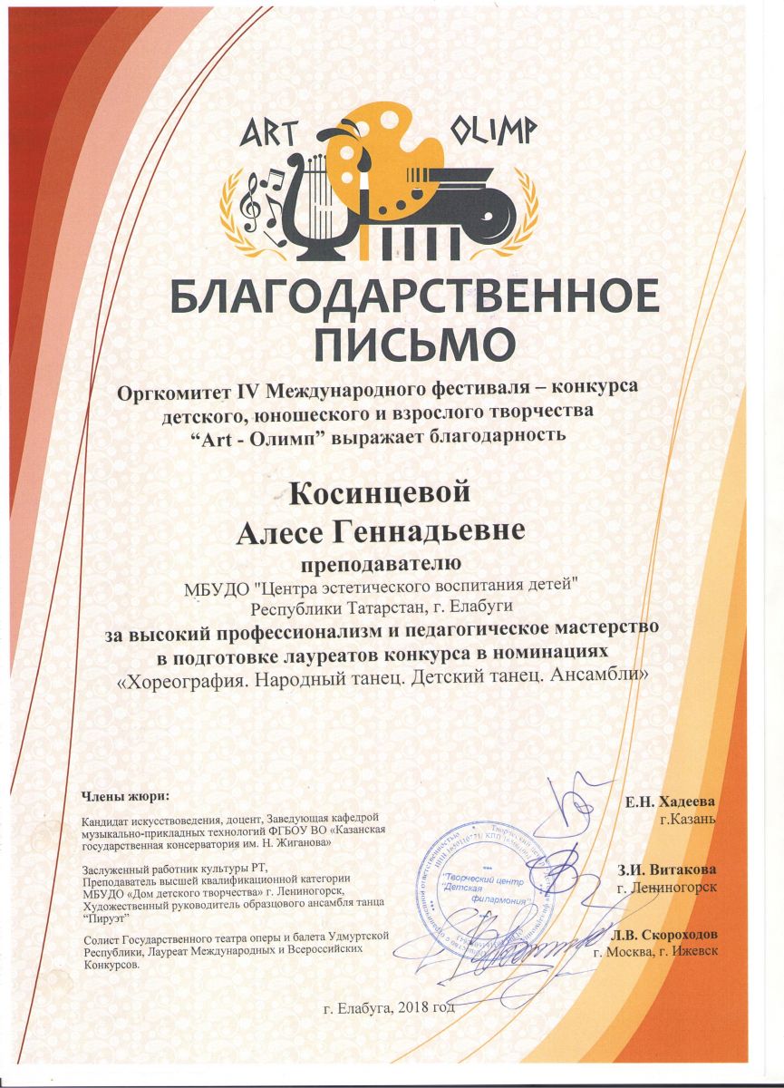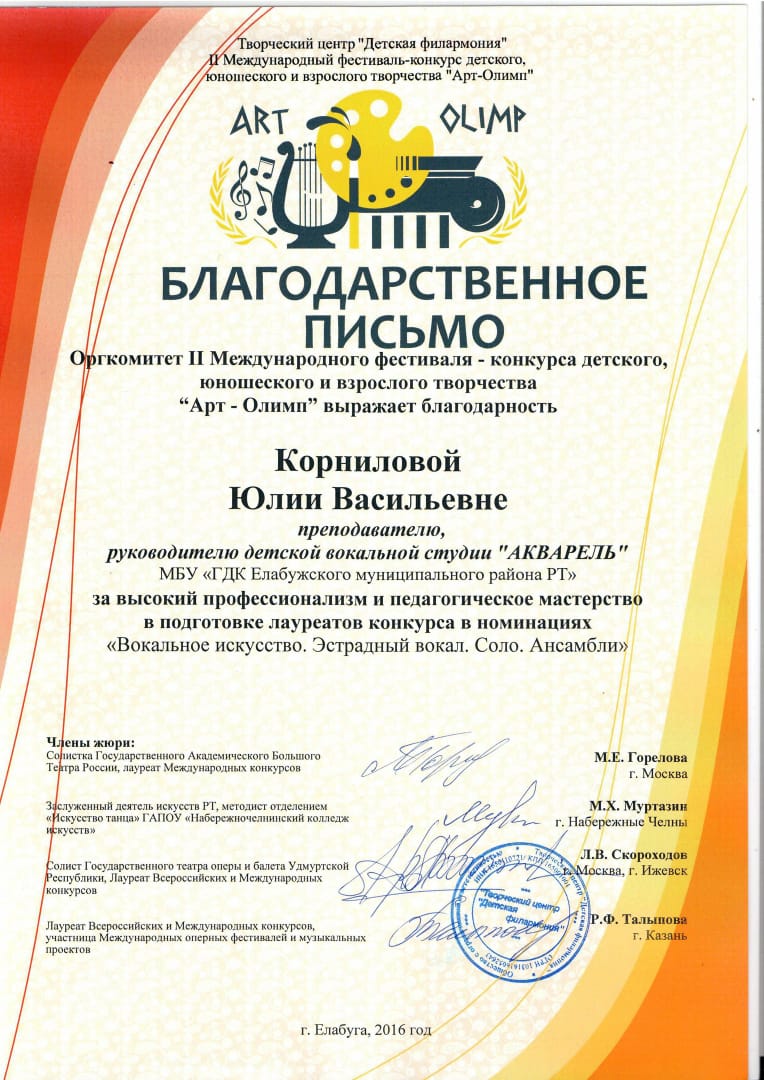 IV Международный фестиваль – конкурс детского, юношеского и детского творчества «Арт-Олимп» |