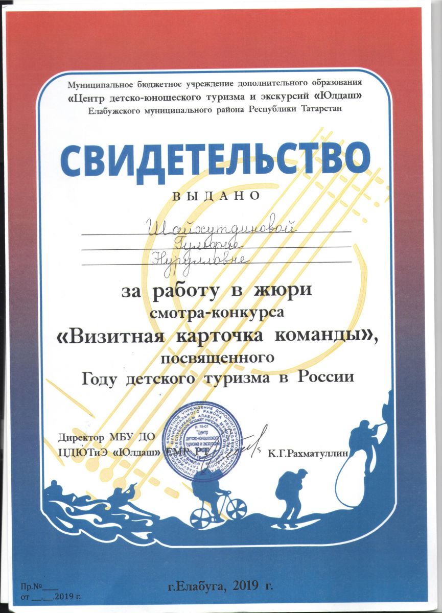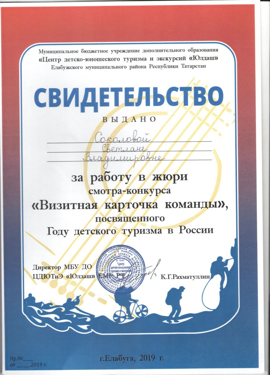 За работу в жюри смотра – конкурса «Визитная карточка команды», посвящённого году туризма в России
