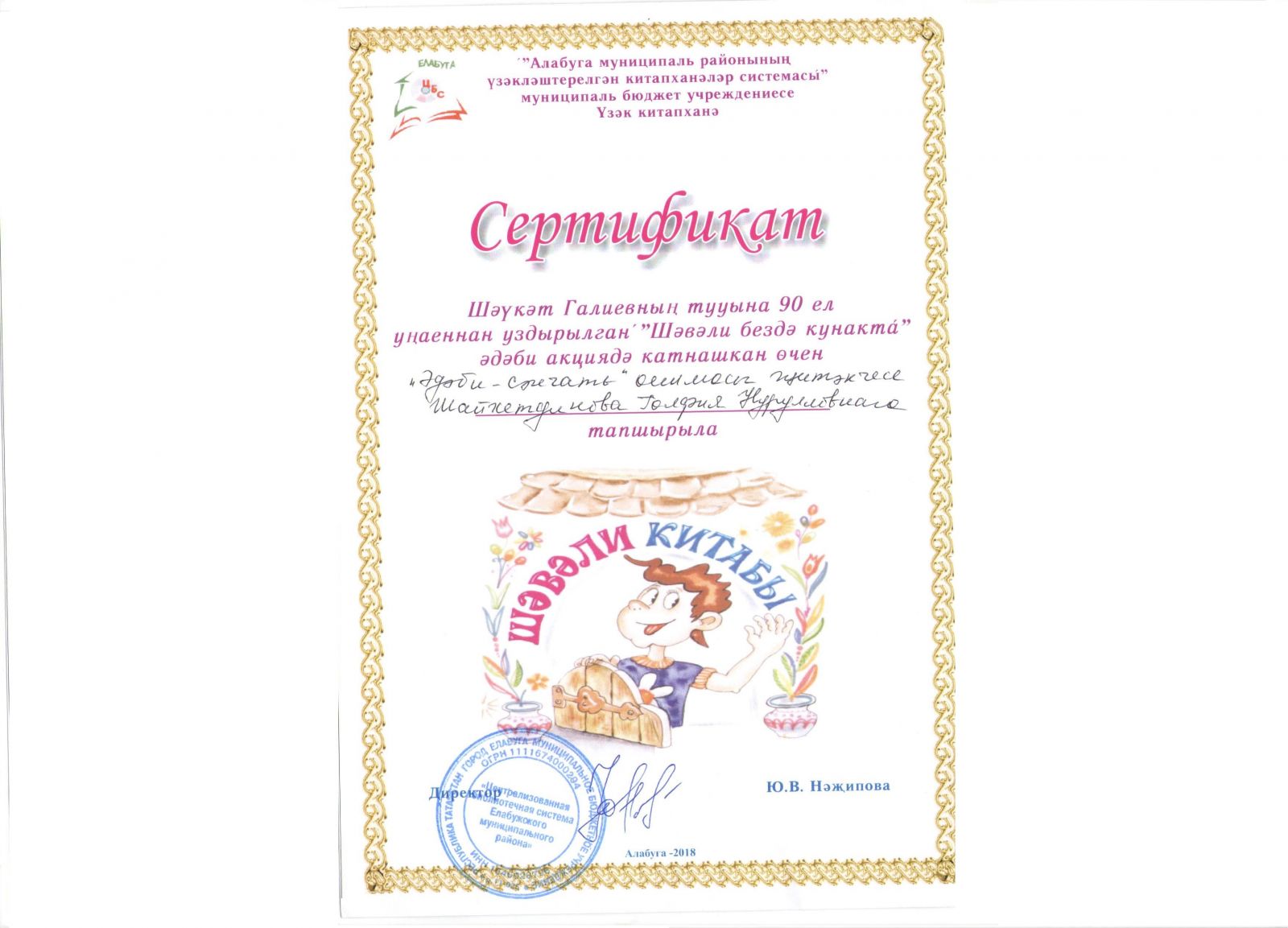 Шәүкәт Галиевның тууына 90 ел уңаеннан уздырылган “Шәвәли бездә кунакта” әдәби кичәдә катнашкан өчен |
