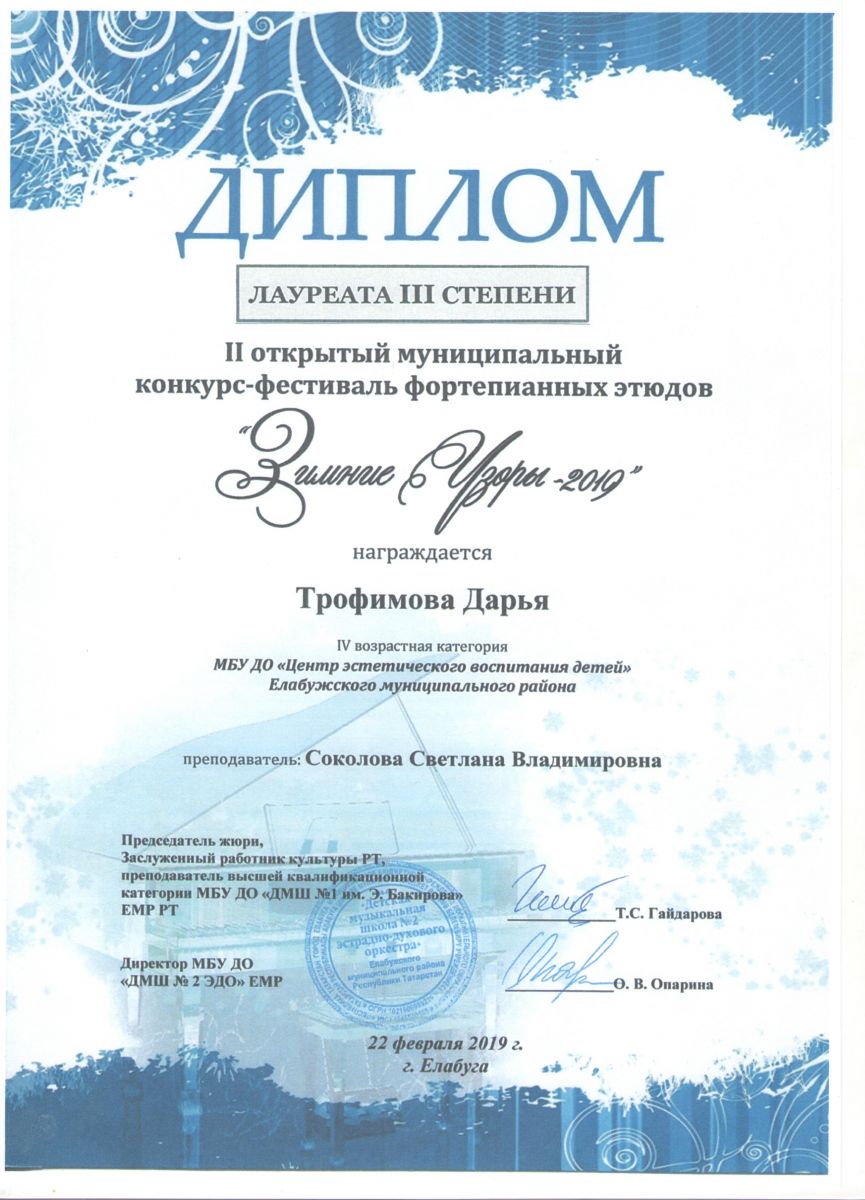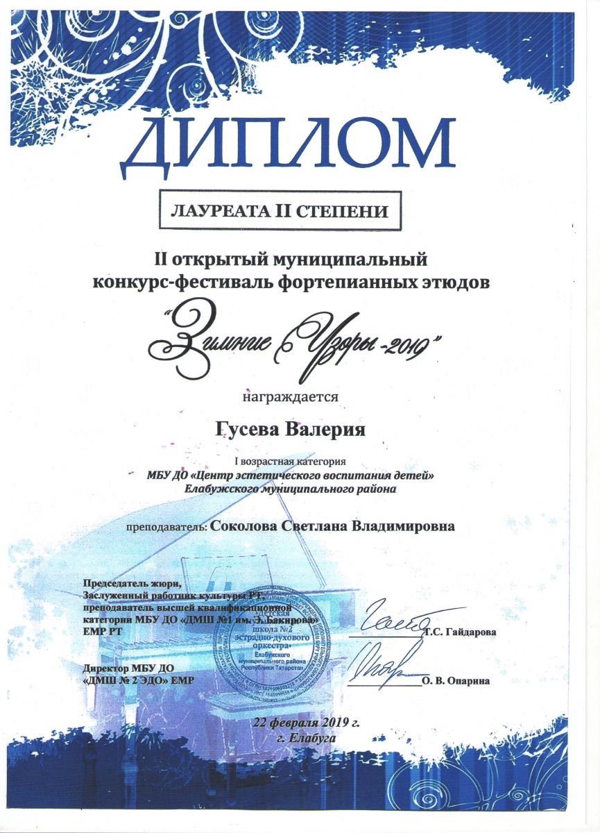 II открытый конкурс-фестиваль фортепианных этюдов «Зимние узоры – 2019» |