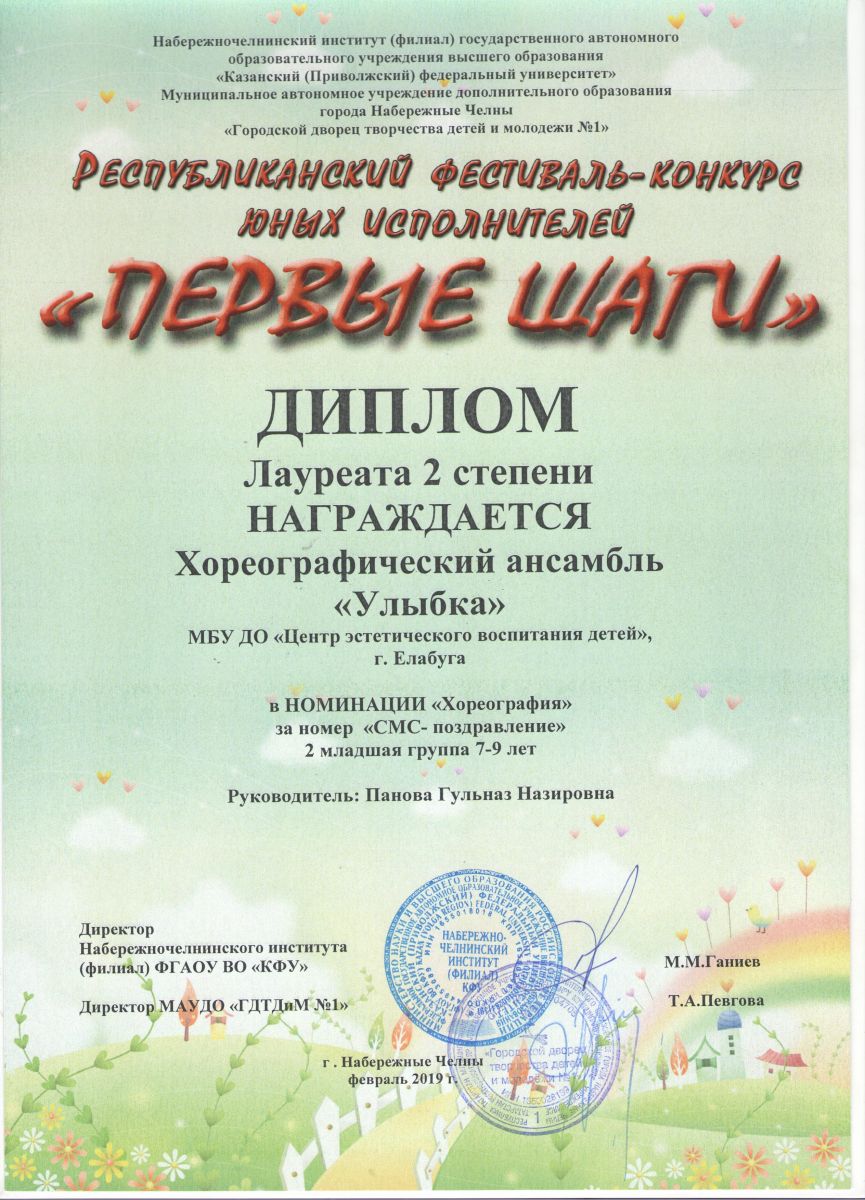 Хореографический коллектив «Улыбка» (7-9 лет Смс поздравление) |