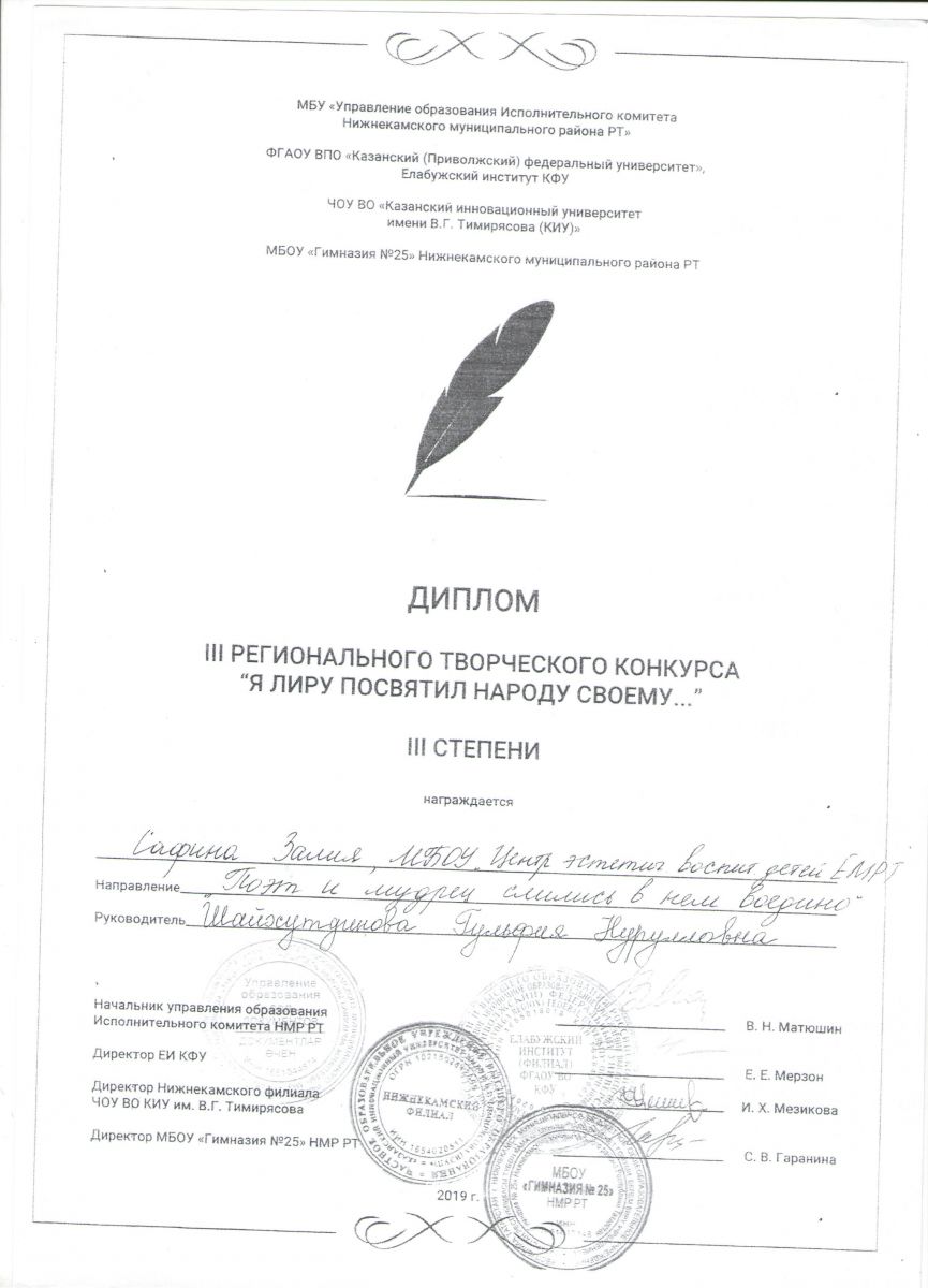 III Региональный творческий конкурс «Я лиру посвятил народу своему …» |