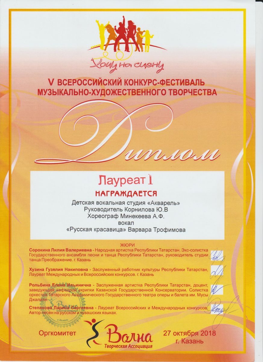 V Всероссийский конкурс – фестиваль музыкального – художественного творчества “Хочу на сцену” |