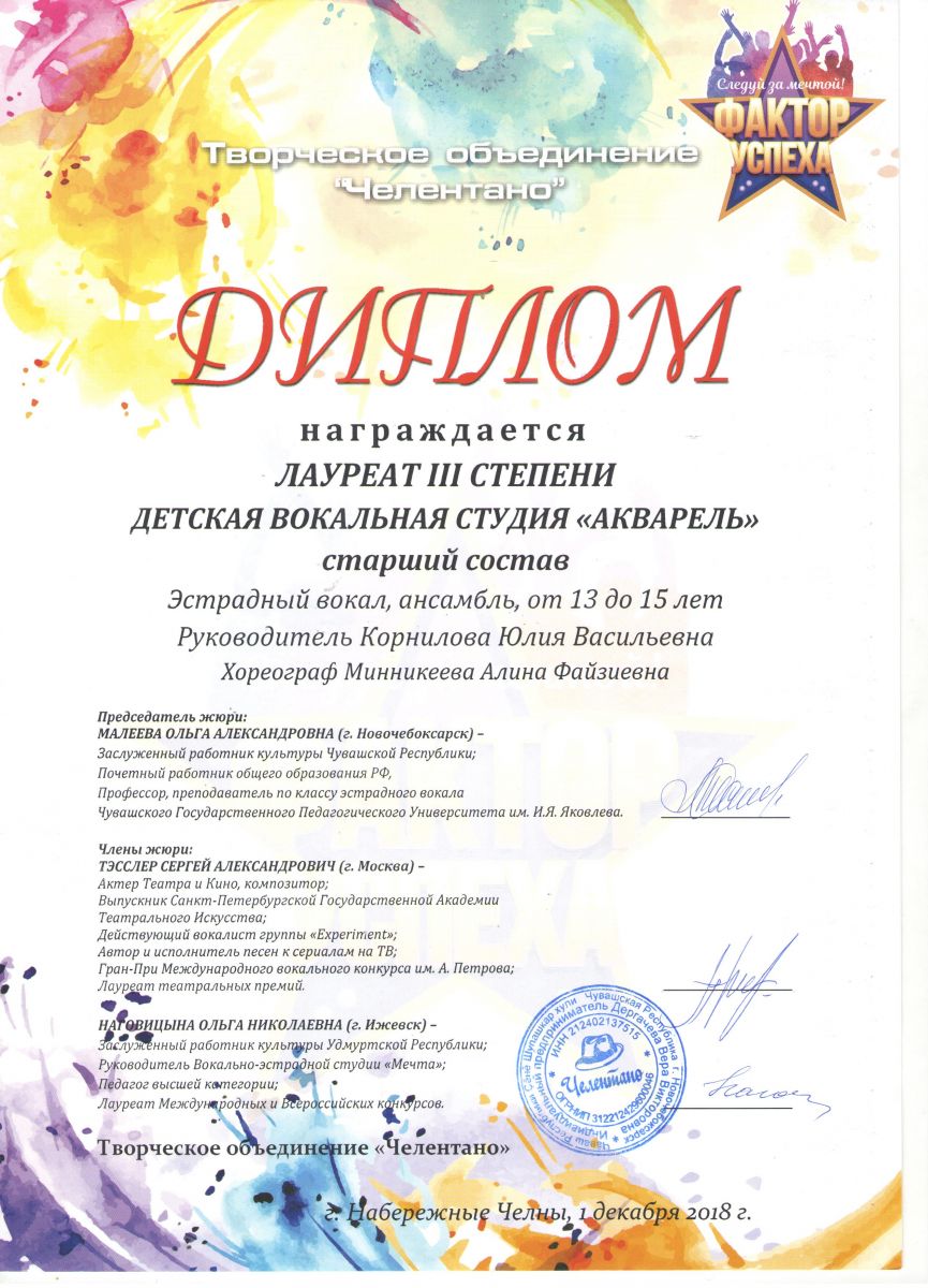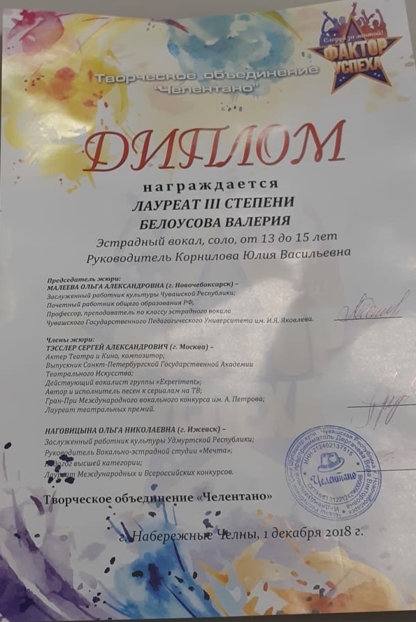 Всероссийский фестиваль - конкурс детского, юношеского и взрослого творчества «Фактор успеха!» |
