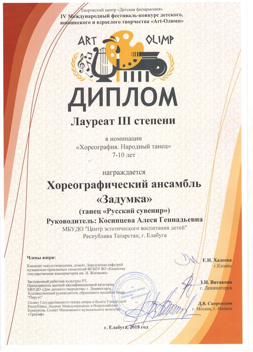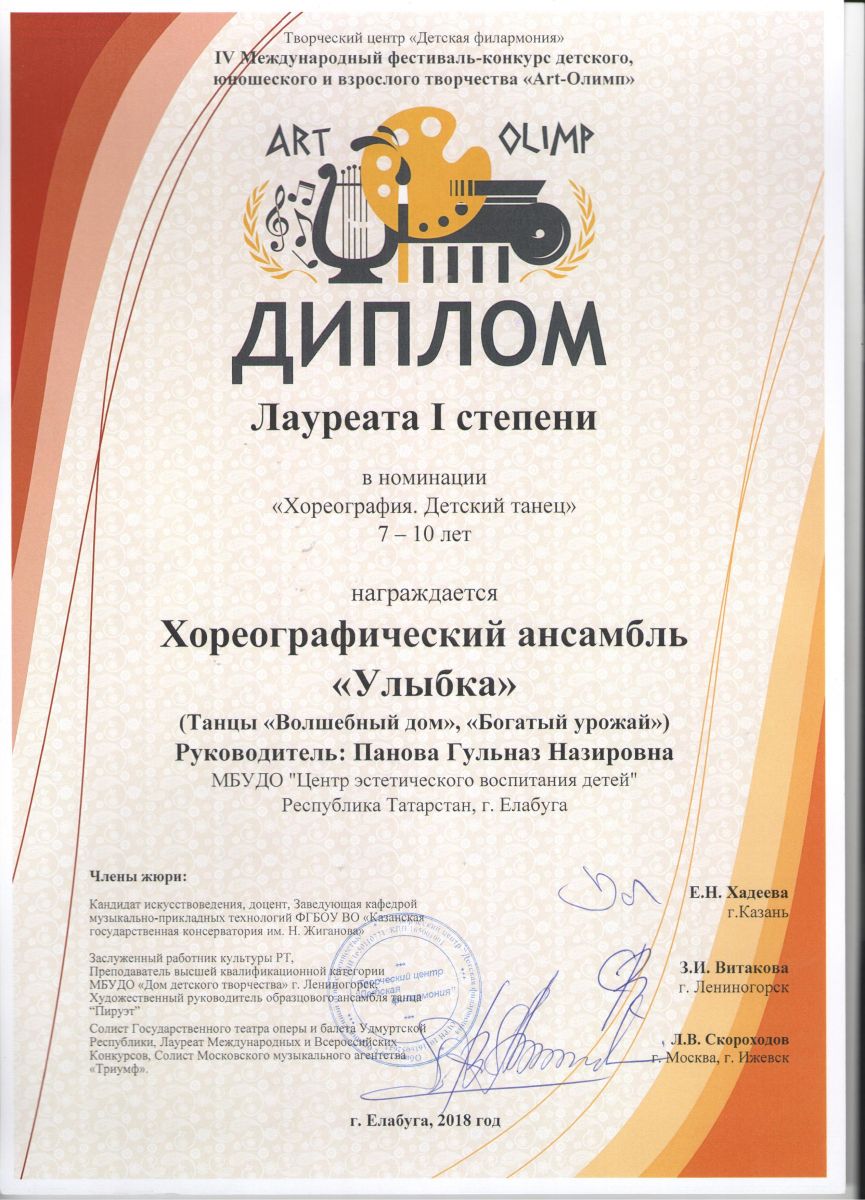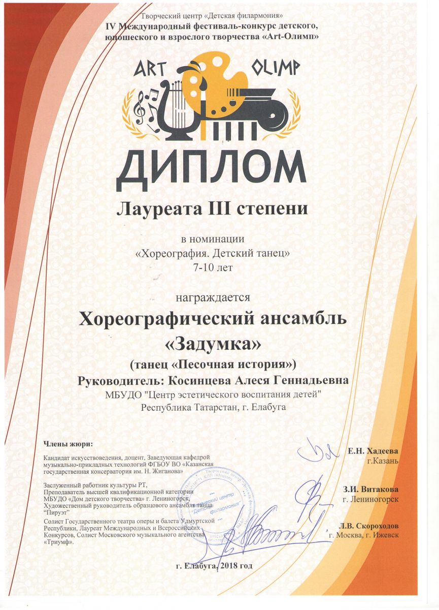 IV Международный фестиваль – конкурс детского, юношеского и детского творчества «Арт-Олимп» |