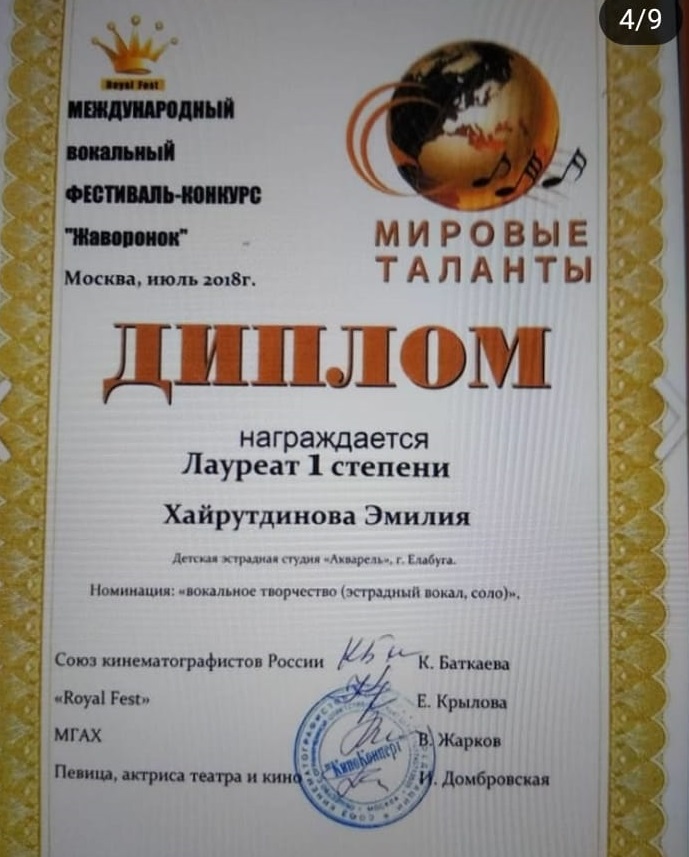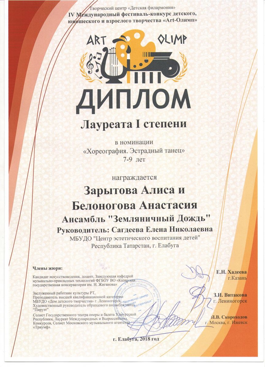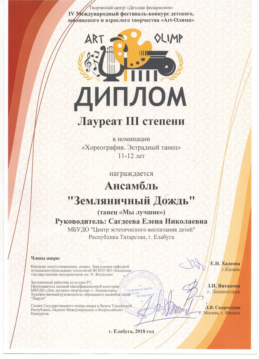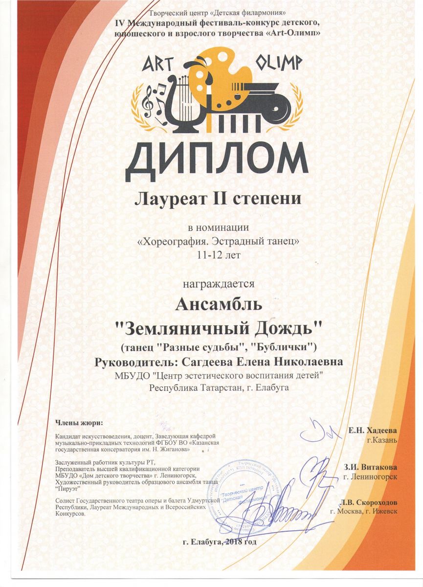 IV Международный фестиваль – конкурс детского, юношеского и детского творчества «Арт-Олимп» |