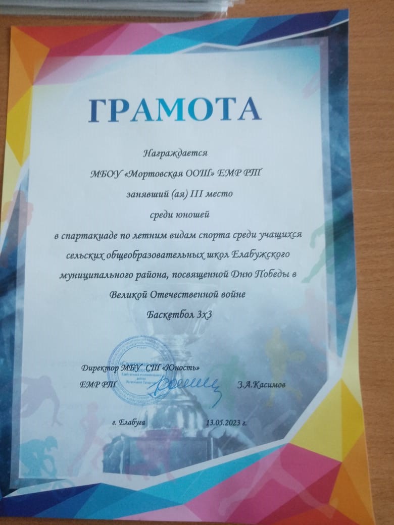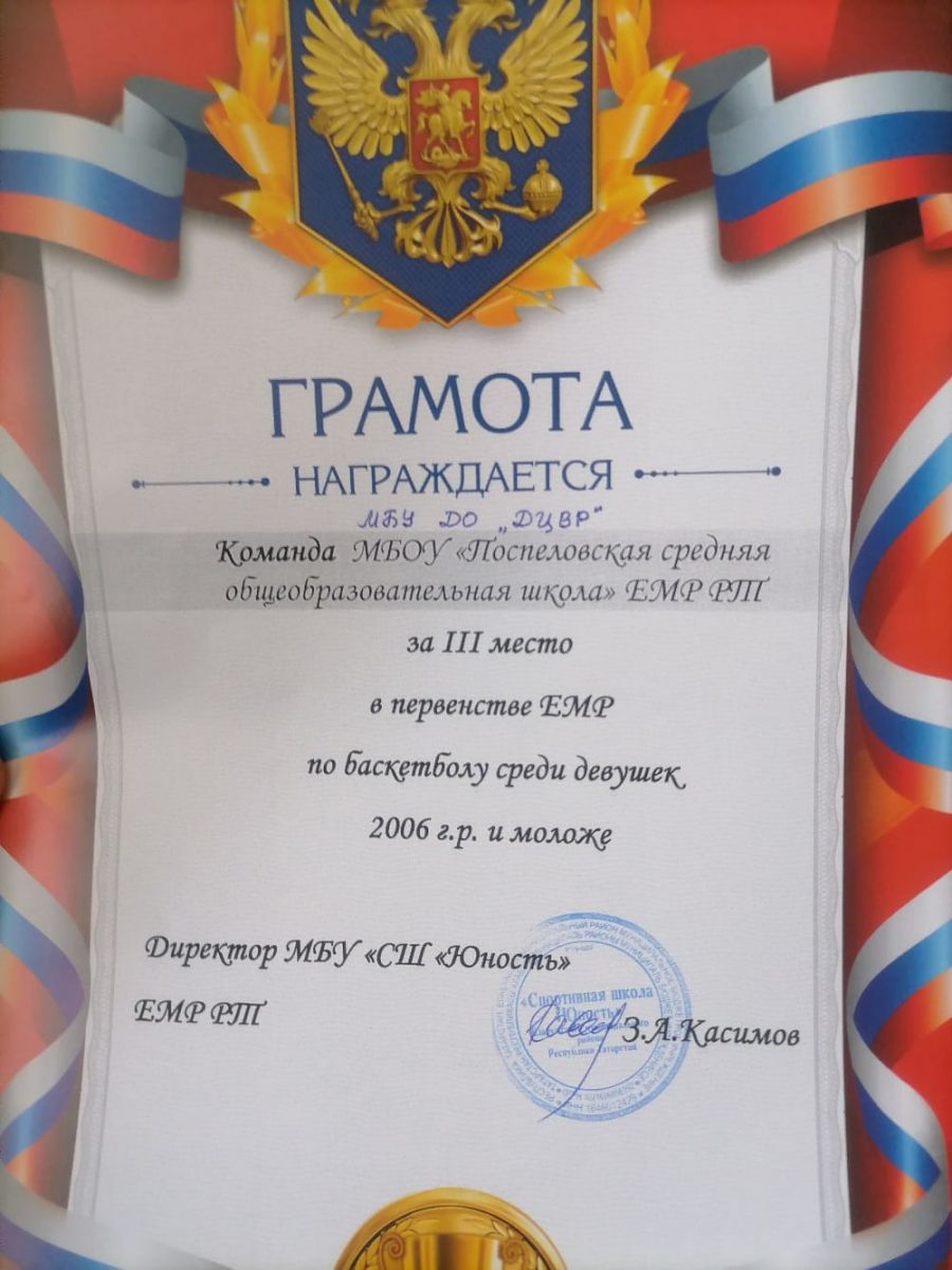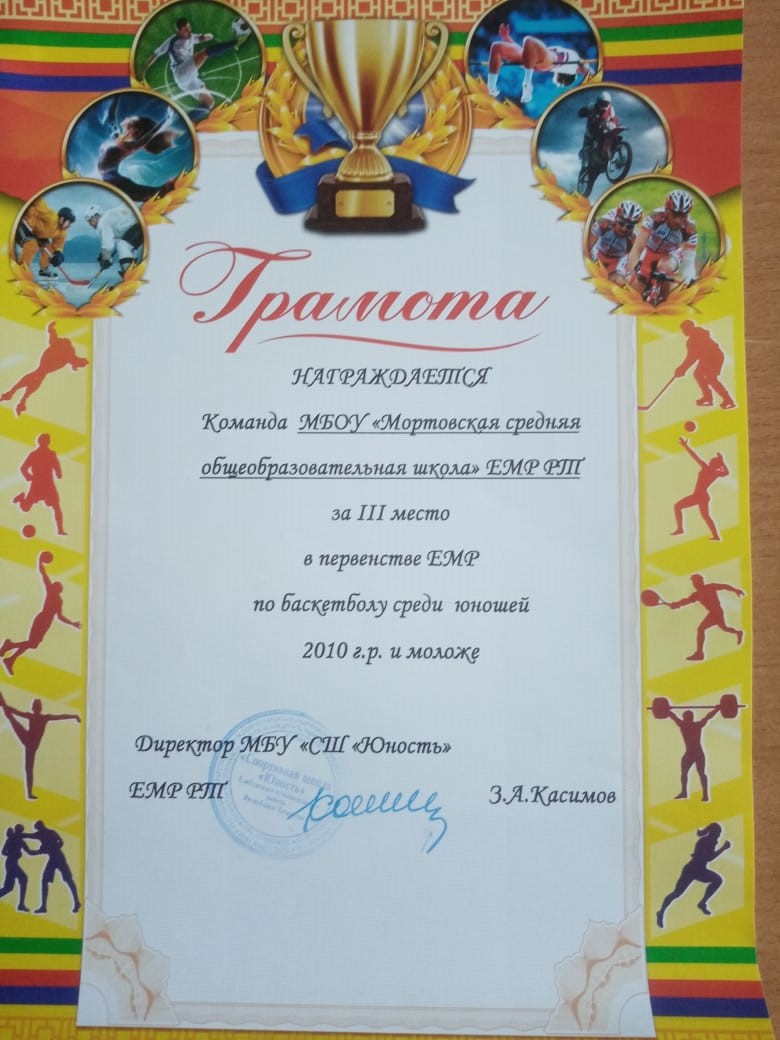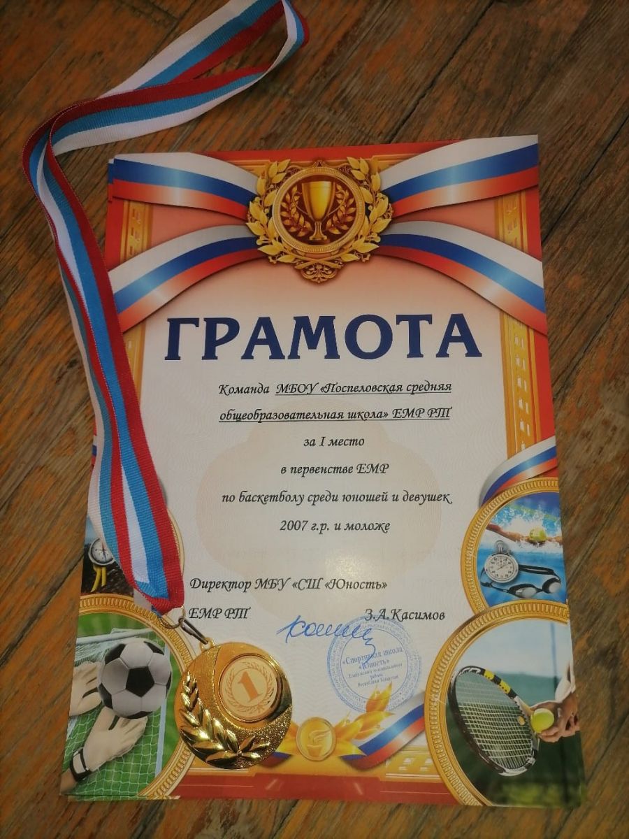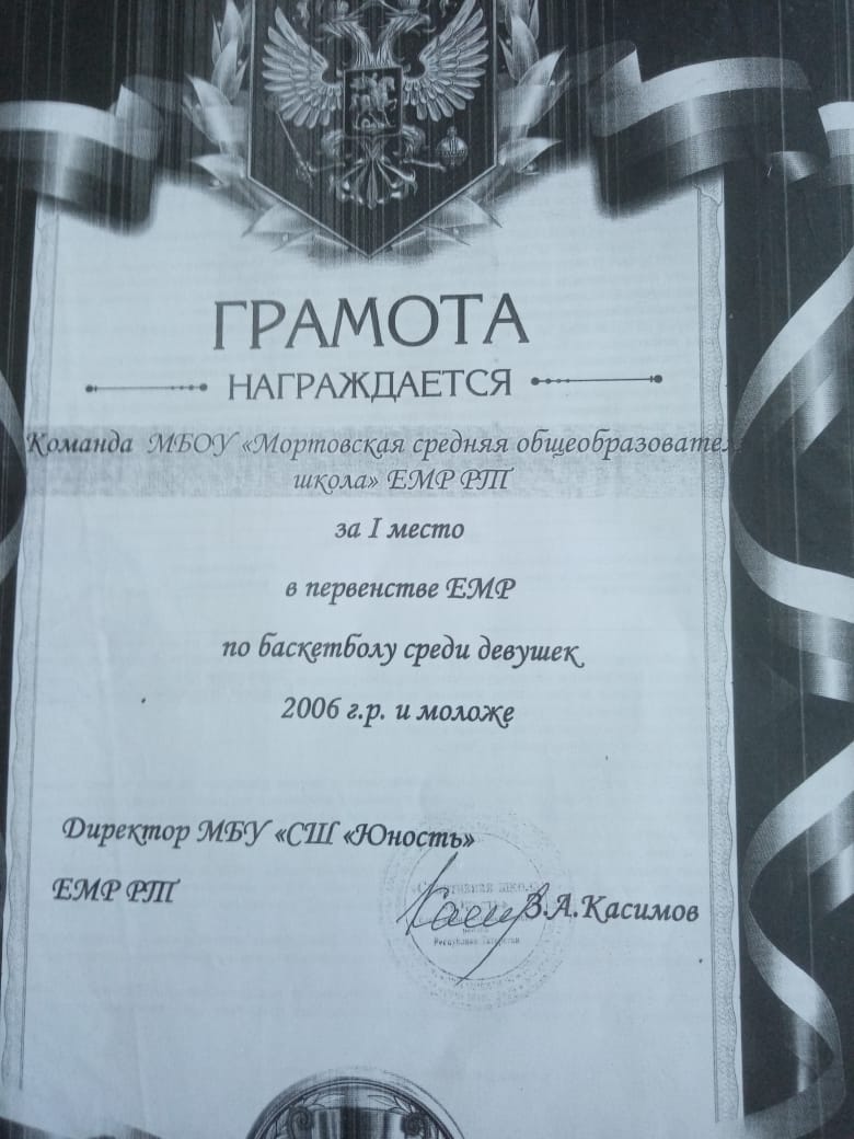 Грамота 1 место по баскеболу Первентство