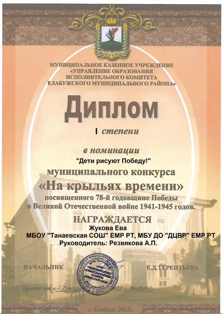 Диплом 1 ст Мунципальный Жукова Ева