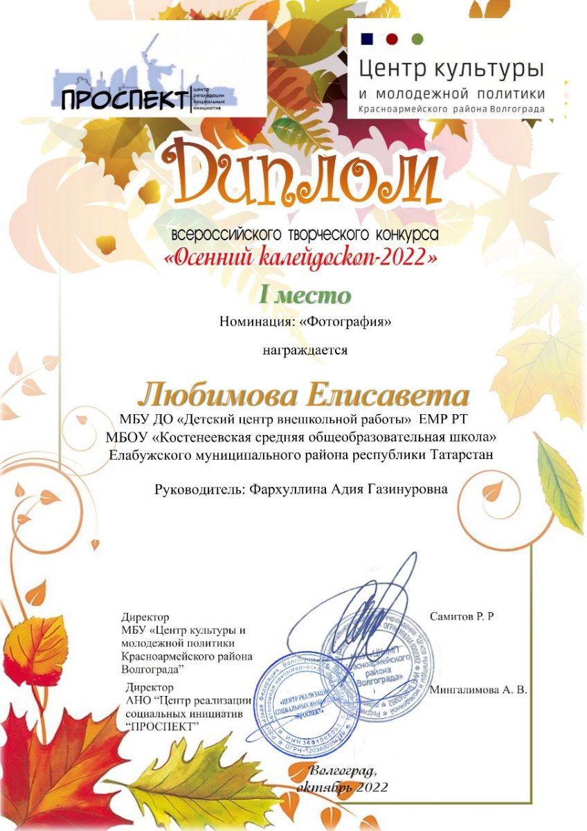 Диплом 1 ст Всероссийский Любимова Елисавета