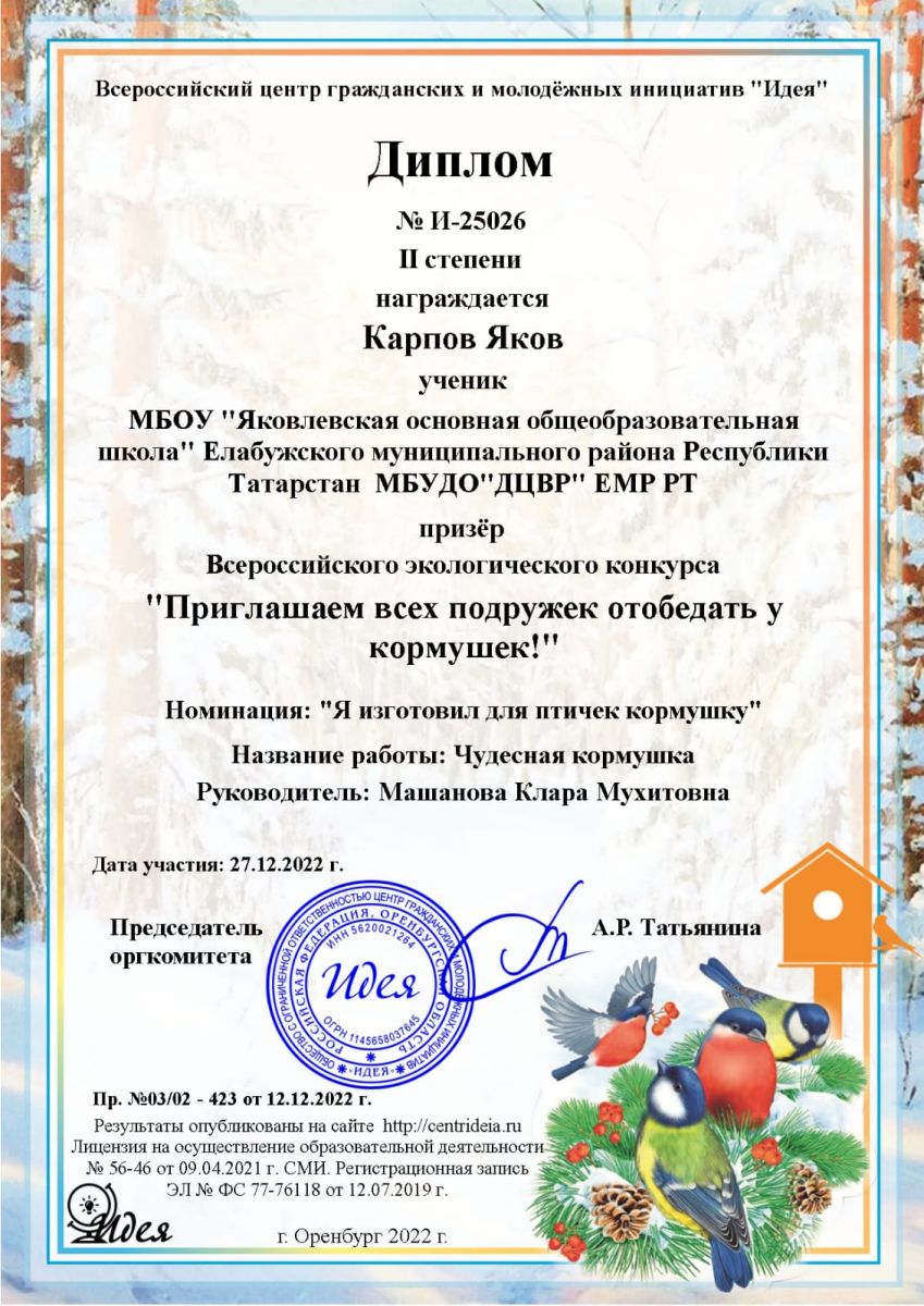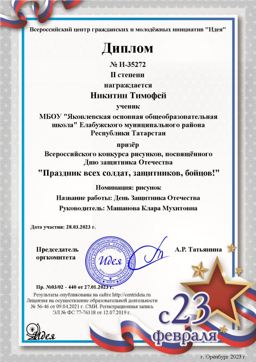 Диплом 2 ст Всероссийский Никитин Тимофей