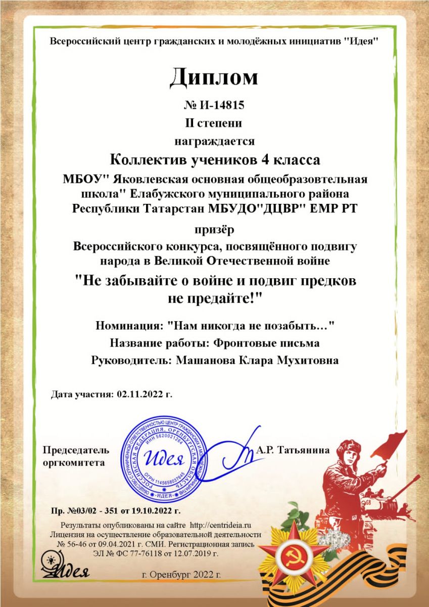 Диплом 2 ст Гайнуллина Зиля Всероссийский