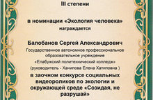 В ноябре-декабре 2015 года прошел Республиканский заочный конкурс социальных видеороликов по экологии и окружающей среде «Созидая, не разрушай». В заочном конкурсе приняли участие 52 образовательных учреждения высшего и среднего профессионального образования РТ.