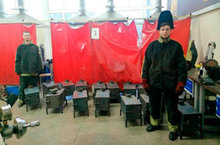 В Елабужском политехническом колледже запустили производство печек-буржуек для походных условий. Небольшие, но надежные печки изготавливают студенты под руководством мастера производственного обучения Гарашова Эльдара Сарвановича.