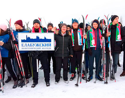 Опубликовано: 12.02.2022Преподаватели, сотрудники и студенты Елабужского политехнического колледжа приняли участие во Всероссийской массовой лыжной гонке «Лыжня России-2022», которая прошла сегодня на лыжероллерной трассе в Танайском лесу.