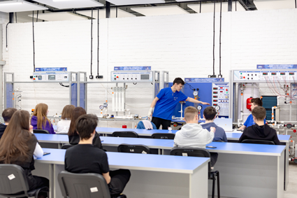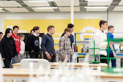В инновационном образовательном центре «Алабуга-Политех», оснащённого высокотехнологичным промышленным оборудованием, которое установлено на современном производстве, ребятам было предложено попробовать свои силы в решении практических задач: моделировании фрагмента здания в профессиональной программе Revit Autodesk; провести анализ на определение концентрации веществ (уточнить каких) титровальным методом на автоматических титраторах; упростить и цифровизовать работу любого предприятия (например отдела бухгалтерии) через создание дополнительных конфигураций на платформе 1С; работу по поиску неисправности в прототипе автоматизированного производственного участка, который позволит восстановить индикаторы работы технологического оборудования; написать код в базовой программе Turtle (черепашка) для понимания принципов программирования на языке Python; мастер-класс по коммутации электрической цепи, которая может пригодиться не только на производстве, но и в повседневной жизни; попробовать поуправлять роботом KUKA с пульта для имитации сборки автомобиля; эксплуатации запорно-регулирующей арматуры, насосов, контрольно-измерительных приборов и автоматики, выполнению сварочных работ.