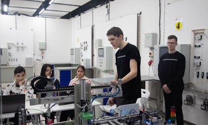 В образовательном центре «Алабуга-Политех», оснащённом высокотехнологичным промышленным оборудованием, которое установлено на современном производстве, ребятам было предложено попробовать свои силы в решении практических задач: моделировании фрагмента здания в профессиональной программе Revit Autodesk; провести анализ на определение концентрации веществ титровальным методом на автоматических титраторах; упростить и цифровизовать работу любого предприятия через создание дополнительных конфигураций на платформе 1С; работу по поиску неисправности в прототипе автоматизированного производственного участка, который позволит восстановить индикаторы работы технологического оборудования; написать код в базовой программе Turtle (черепашка) для понимания принципов программирования на языке Python; мастер-класс по коммутации электрической цепи, которая может пригодиться не только на производстве, но и в повседневной жизни; попробовать поуправлять роботом KUKA с пульта для имитации сборки автомобиля; эксплуатации запорно-регулирующей арматуры, насосов, контрольно-измерительных приборов и автоматики, выполнению сварочных работ.
