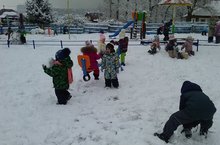 Вот и настал этот долгожданный день, когда в небе закружились первые снежинки. Все скрылось под белым, воздушным покрывалом. Ребята пришли в детский сад веселые, возбужденные. Все были просто в восторге от первого снега, они радовались этому легкому, пушистому "покрову". С нетерпением ожидали прогулки. Малыши быстро оделись и вышли на участок. Их радости не было предела\Менә бу күптән көтелгән көн дә килеп җитте, күктә беренче кар бөртекләре дуслашып китте. Барысы да ак, һава капламы астында яшеренгән. Балалар бакчасына бик күңелле, дулкынланучылар килде. Барысы да беренче кардан бик канәгать булды, алар бу җиңел, пушистый "покрову"га шатландылар. Түземсезлек белән җәяү йөрүне көттек. Балалар бик тиз киенгән һәм участокка чыккан. Аларның шатлыгына чикләр булмады.
