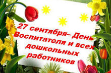 День воспитателя и всех дошкольных работников — профессиональный праздник в Российской Федерации. Этот праздник отмечается ежегодно, 27 сентября. В этот день есть прекрасный повод поздравить всех работников дошкольных образовательных учреждений и выразить им признательность за их ежедневный кропотливый труд, за то тепло, которое они отдают детям\Россия Федерациясендә тәрбиячеләр һәм мәктәпкәчә яшьтәге барлык балалар хезмәткәрләре көне — һөнәри бәйрәм. Бу бәйрәм ел саен, 27 сентябрьдә билгеләп үтелә. Бу көнне барлык мәктәпкәчә белем бирү учреждениеләре хезмәткәрләрен котларга һәм аларның көндәлек тырыш хезмәтләре, балаларга биргән җылы хезмәтләре өчен рәхмәт белдерергә менә дигән форсат бар.