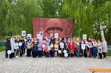 Мәктәп укучылары һәм хезмәткәрләре “Җиңү тәрәзәсе” акциясендә катнаштылар.