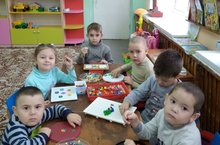 Безнең балалар әвәләргә бик яраталар. / Наши дети очень любят лепить.