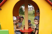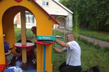 Балалар бакчасына ата-аналар ярдәме белән яңа өй җыйдык. Ярдәм иткән әти-әниләргә зур рэхмэтебезне белдерәбез./ С помощью родителей на детскую площадку собрали новый домик - Гномик. Мы объявляем благодарность нашим родителям.