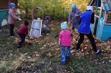 Алтын көз дә килеп җитте. Агачлар кызгылт-сары яфракларын коя башлады. Без балалар белән берлектә коелган яфракларны җыйдык./Наступила золотая осень. Деревья пожелтели и начали выпадать листья. Мы вместе с детьми устроили средник.