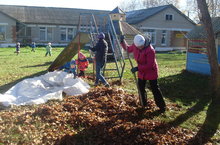 Көз җитте, яфраклар коела башлады. 23.09.2016 Көз җитүгә, яфраклар саргаеп коела башладылар.Көн матур булу сәбәпле, без дә тырмаларыбызны алып территориябезне җыештырып алдык.