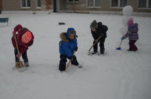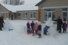 Балалар рәхәтләнеп, кар яуганга сөенеп уйныйлар, төрле әйберләр төзиләр, ясыйлар.