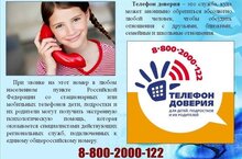 Тормыш якты мизгелләрдән генә тормый. Кайвакыт балаларга, олылар кебек үк, алар да катлаулы проблема алдында басып торалар кебек тоела, аны хәл итү мөмкин түгел, һәм шул вакытта тормышның барлык төсләре ялтырап тора башлый. Без советтан сорыйбыз һәм үз проблемаларыбызны хәл итү мәсьәләләрендә бөтенләй компетентлы булмаган кешеләрдән ярдәм көтәбез, ә кайвакыт безгә мөрәҗәгать итәр кеше юк. Һәр бала, яшүсмер яки ата-ана аноним һәм бушлай квалификацияле психологик ярдәм ала алсын өчен, һәм бердәм гомумроссия ышаныч телефоны 8-800-2000-122 төзелде. Чыбыкның теге ахырында безгә ярдәм күрсәтәчәк һәм безгә калса, хәлдән чыгу юлын тәкъдим итәчәк профессиональ психолог җавап бирәчәк. Балалар ышаныч телефоны - балаларга һәм ата-аналарга телефон аша ашыгыч психологик ярдәмнең бушлай аноним хезмәте. Ул балаларның яхшылыгын ачыклау һәм профилактикалау, балаларның хокукларын бозу, алар белән рәхимсез эш итү бурычларын хәл итүдә мөһим роль уйный.