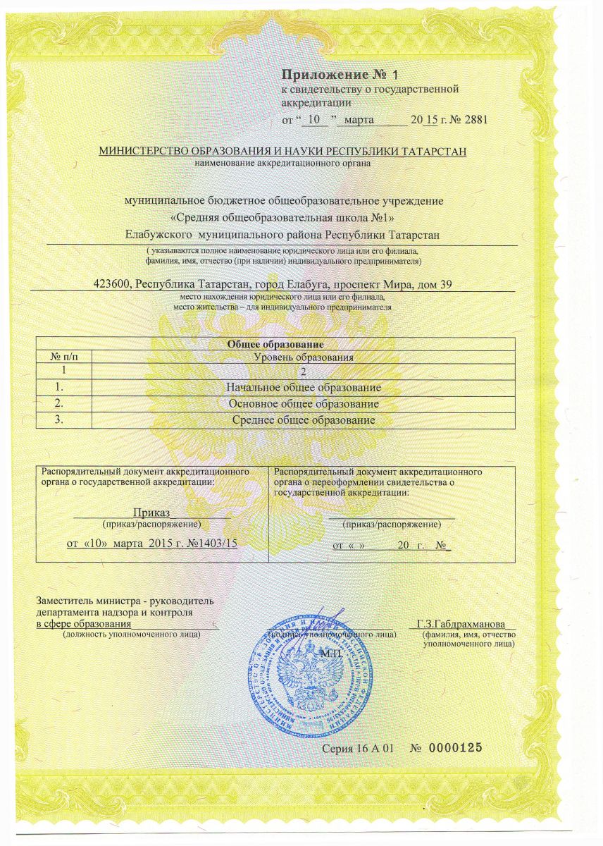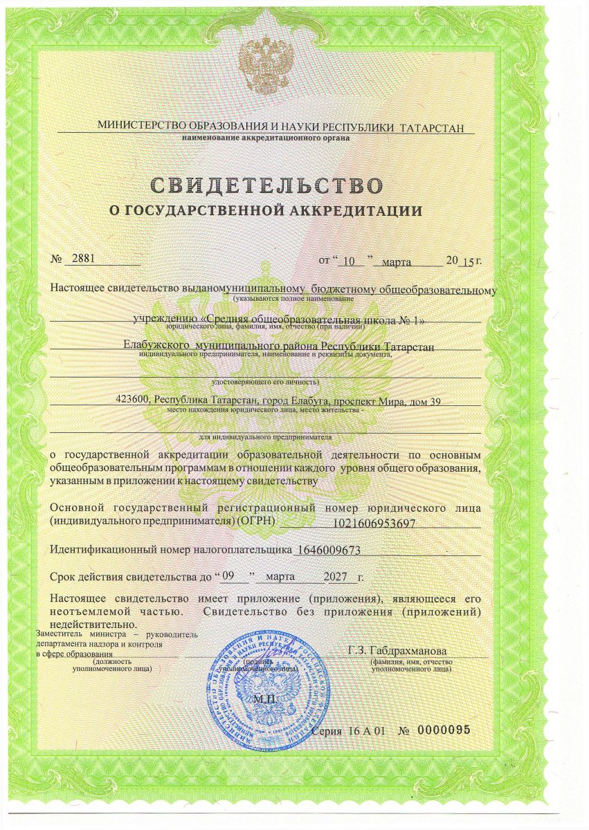 муниципальное бюджетное общеобразовательное учреждение «Средняя общеобразовательная школа №1» Елабужского муниципального района Республики Татарстан/Татарстан Республикасы Алабуга муниципаль районы «1нче урта гомуми белем мәктәбе» гомуми белем муниципаль бюджет учреждениесе