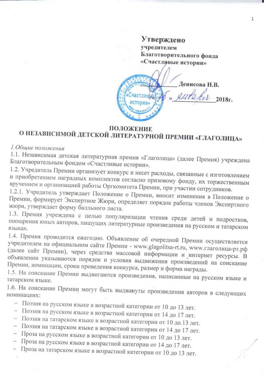 Независимая детская литературная премия "Глаголица" приглашает к участию учащихся 10-17 лет 05.09.2018