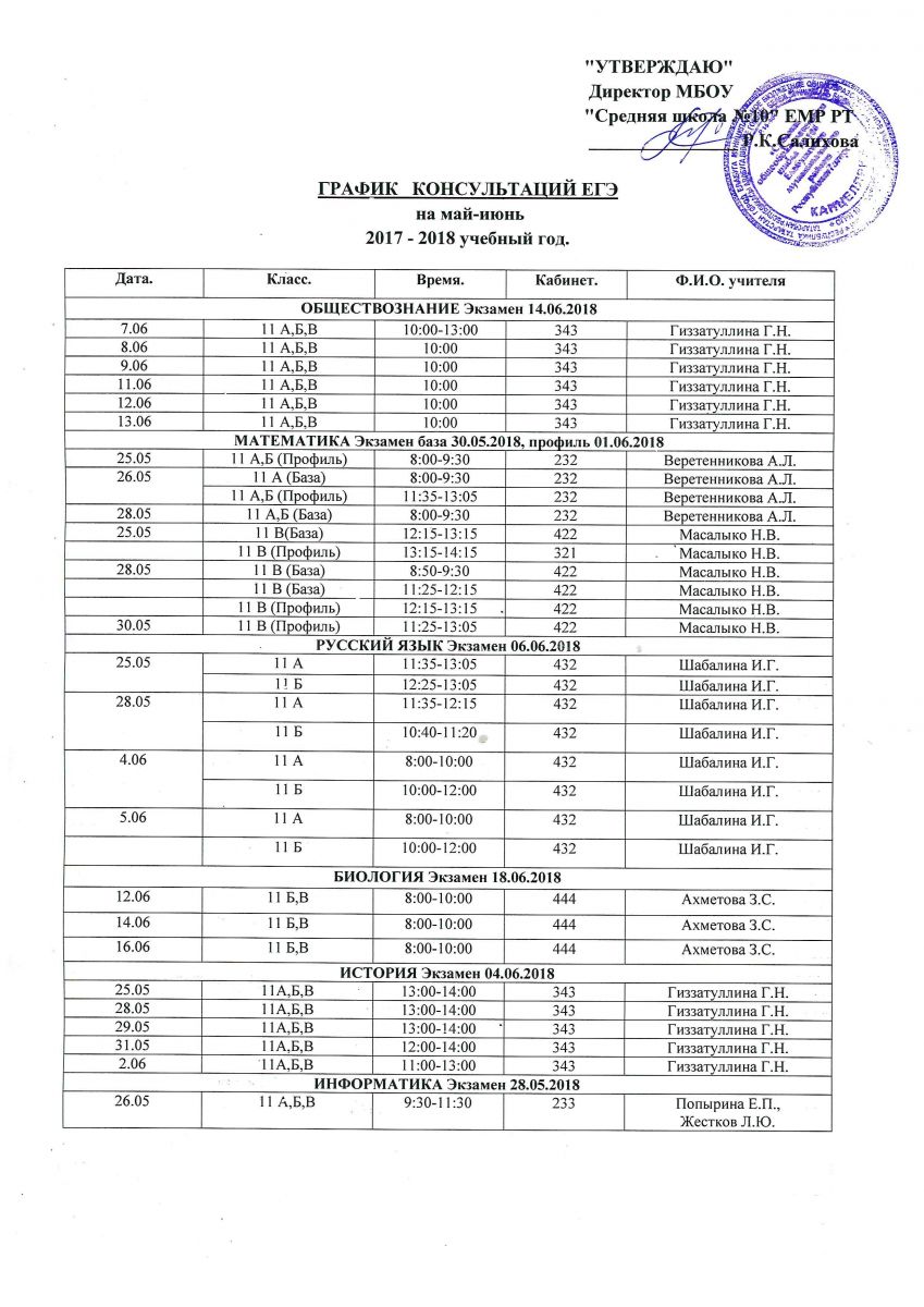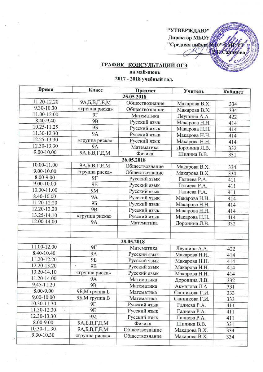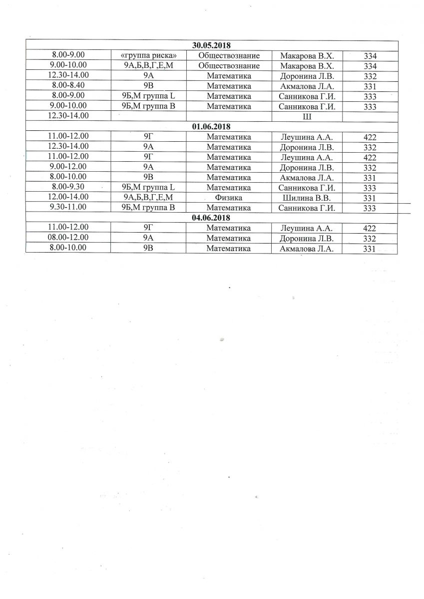Графики консультаций по подготовке к ЕГЭ и ОГЭ для учащихся 9 и 11-х классов 30.05.2018