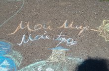 Сегодня в лагере прошел конкурс рисунка на асфальте «Мой мир. Мой город». В своих рисунках ребята показали, как они любят свой родной город, свой микрорайон.